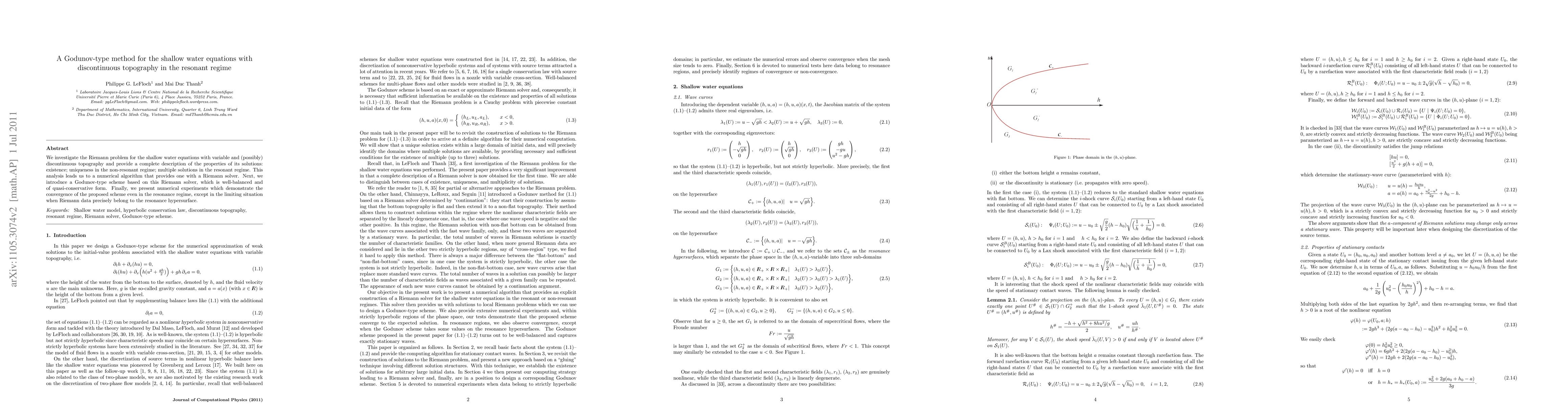 This paper develops a Godunov-type method for solving the shallow water equations with variable topography in the resonant regime, providing well-balanced solutions even in resonance.