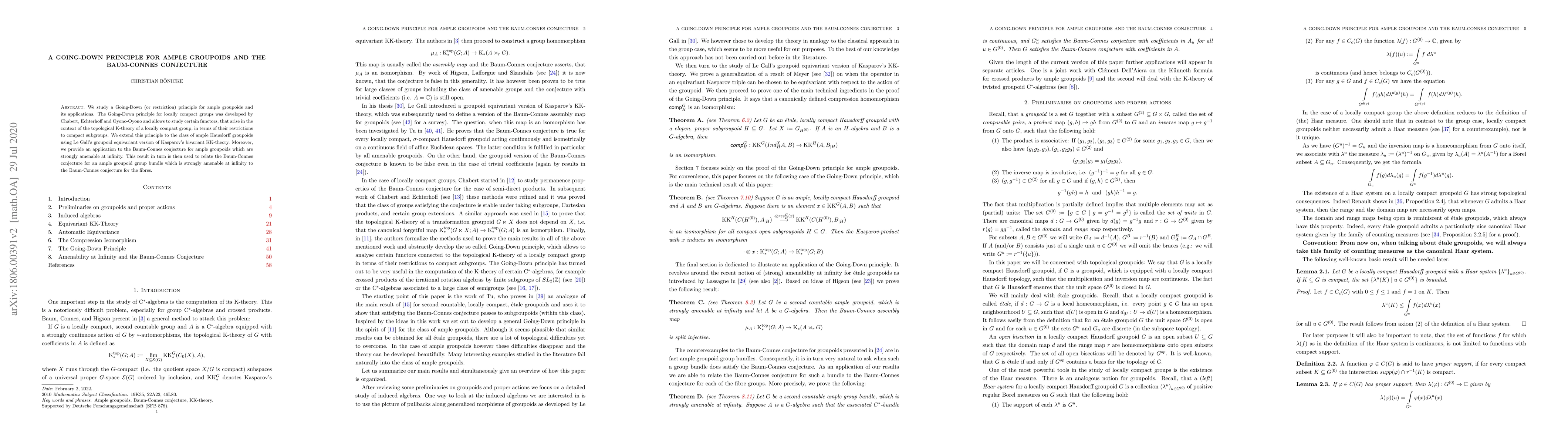This paper extends the Going-Down principle for ample Hausdorff groupoids, using Le Gall's groupoid equivariant KK-theory, and applies it to the Baum-Connes conjecture for strongly amenable at infinity groupoids, thereby linking the conjecture for the group bundle to that of its fibres.
