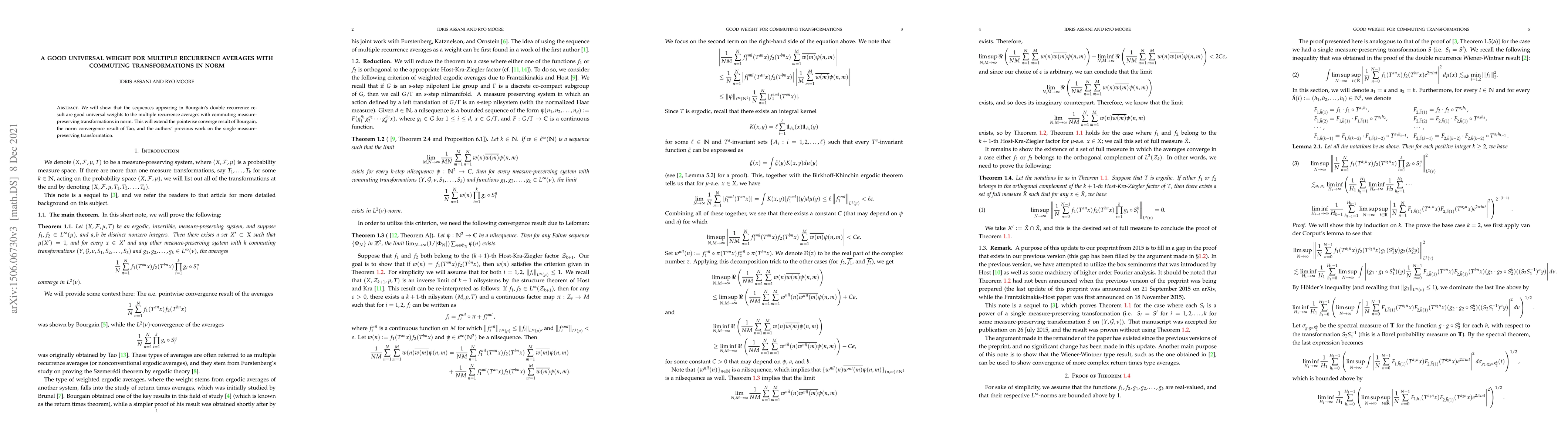Summary: This paper demonstrates that Bourgain's sequences serve as effective universal weights for multiple recurrence averages involving commuting measure-preserving transformations in norm, extending prior results on pointwise and norm convergence.