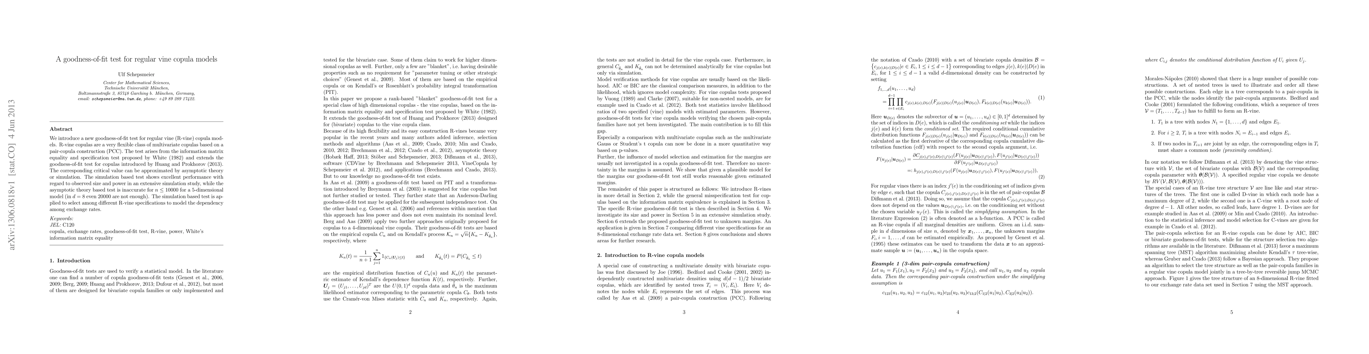 The paper introduces a new goodness-of-fit test for regular vine (R-vine) copula models, extending the test by Huang and Prokhorov (2011) using the information matrix equality and specification test proposed by White (1982).