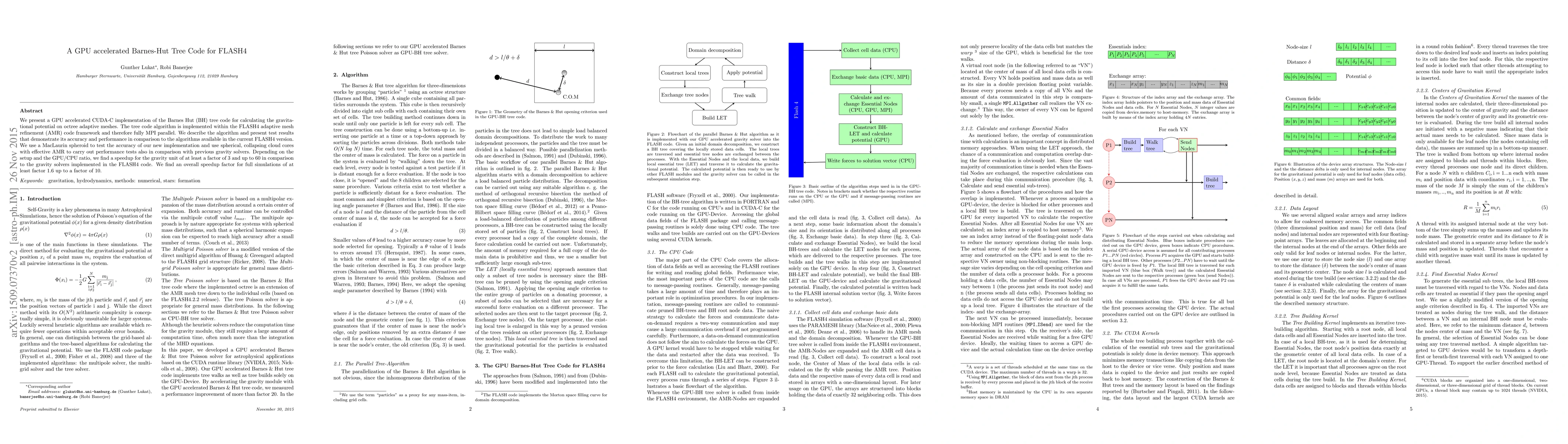 This paper presents a GPU accelerated CUDA-C implementation of the Barnes-Hut tree code within the FLASH4 adaptive mesh refinement framework, achieving significant speedups of 3 to 60 times compared to previous gravity solvers, with an overall speedup factor of 1.6 to 10 for full simulations.