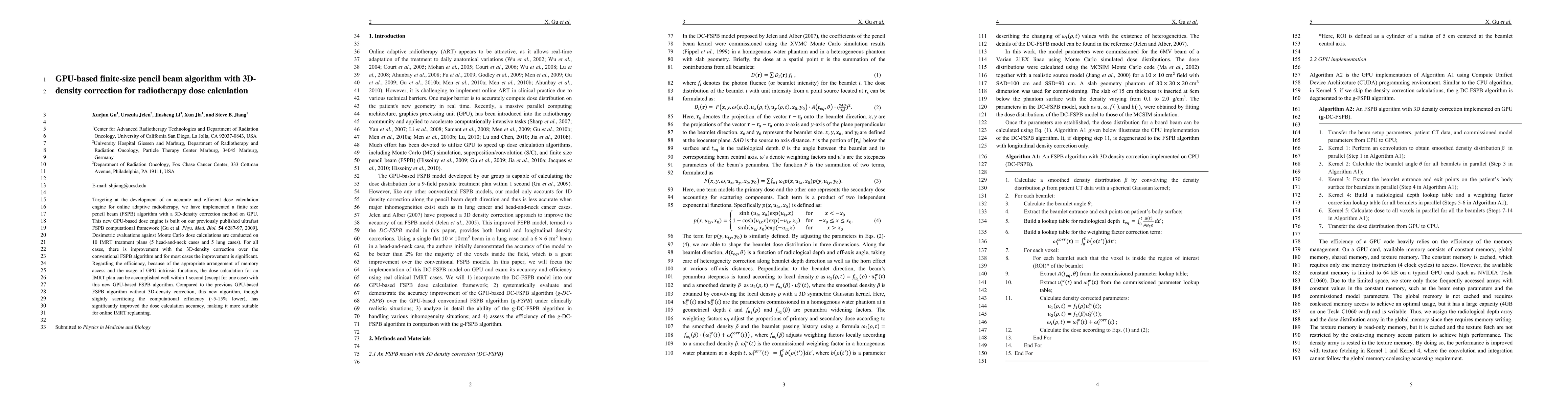This paper presents a GPU-based finite-size pencil beam algorithm with 3D-density correction for radiotherapy dose calculation, significantly improving accuracy over conventional methods. The new algorithm maintains efficiency, completing dose calculations for IMRT plans within 1 second, albeit with a slight (~5-15%) reduction in speed compared to previous versions.