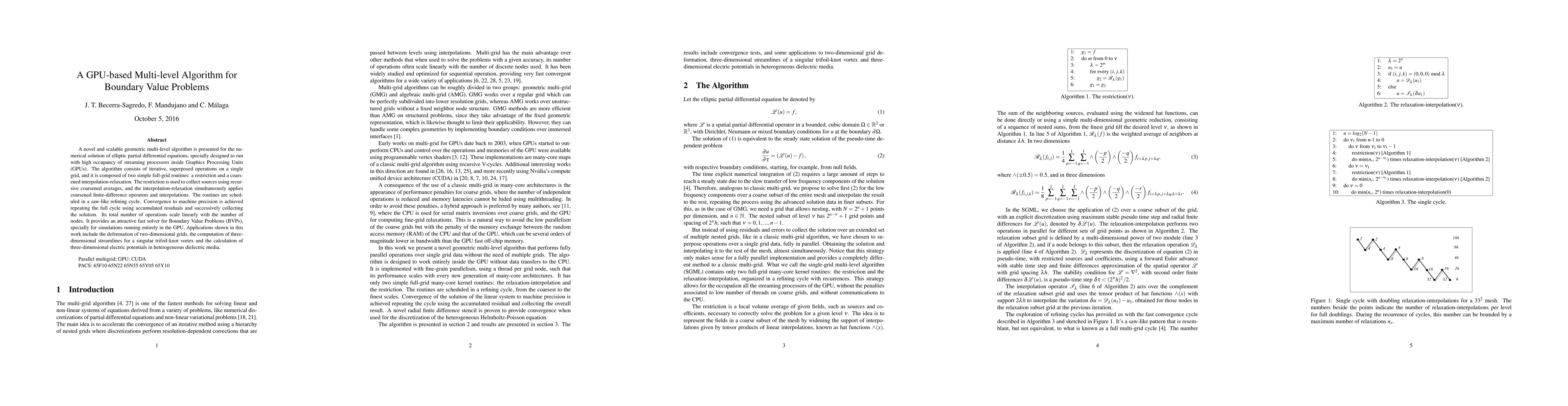 This research introduces a new GPU-optimized algorithm for efficiently solving boundary value problems in complex systems, achieving rapid and precise results. It uses simple, iterative routines that scale linearly with problem size, making it highly suitable for large-scale simulations on graphics processors.