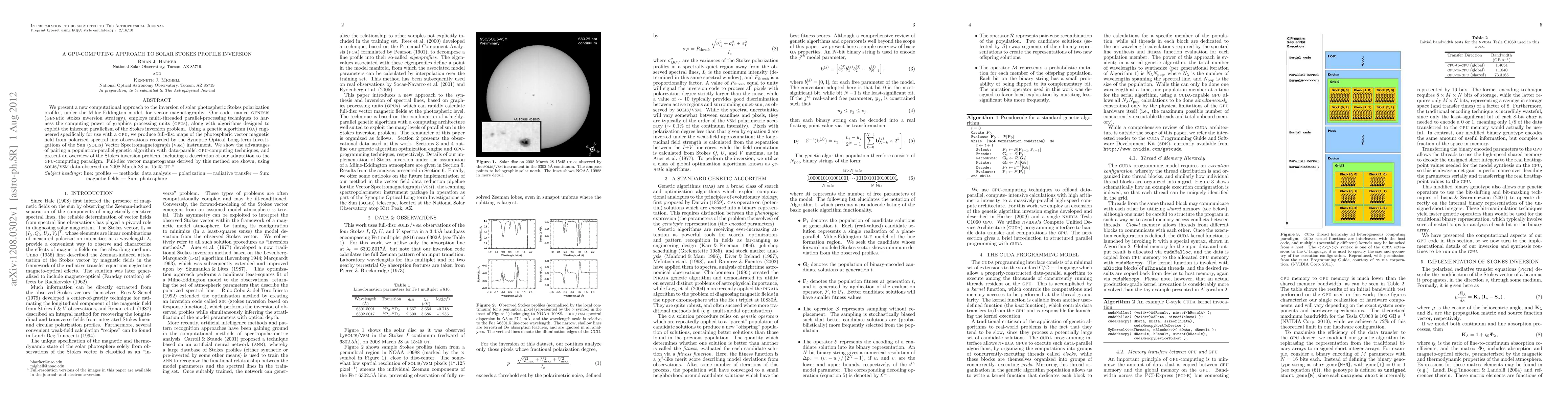 This paper introduces GENESIS, a GPU-computing approach for inverting solar photospheric Stokes profiles using parallel processing and a specialized genetic algorithm, to generate full-disc vector magnetograms from SOLIS VSM observations. The method demonstrates significant efficiency gains by leveraging GPU capabilities and parallel algorithms.
