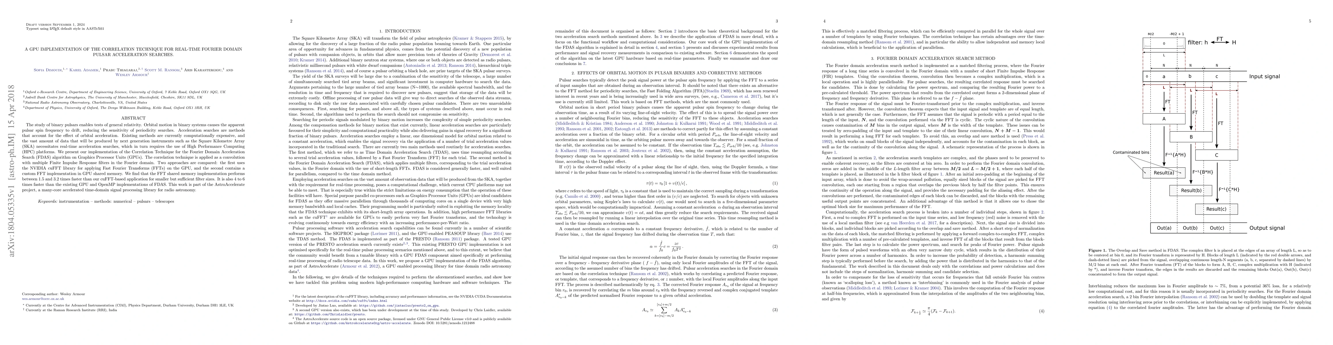 This paper presents a GPU implementation of the Correlation Technique for real-time Fourier Domain Pulsar Acceleration Searches, comparing two FFT approaches: one using the cuFFT library and another with a custom FFT in shared memory. The custom FFT implementation is found to be significantly faster for smaller filter sizes.