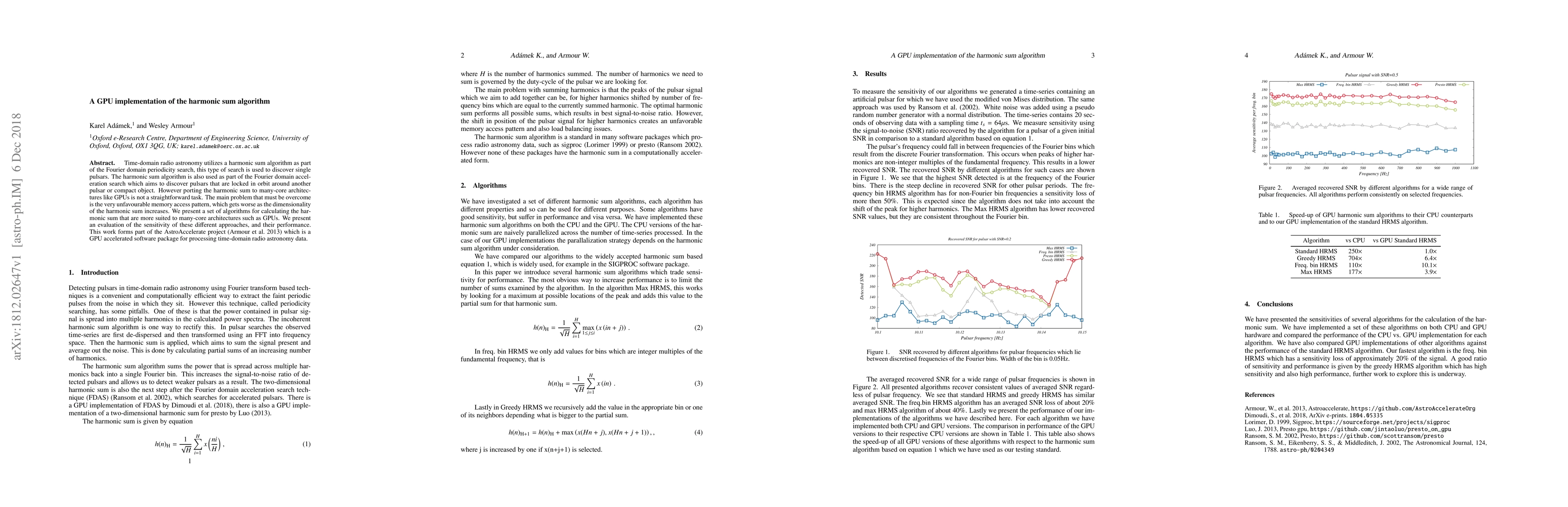 Time-domain radio astronomy utilizes a harmonic sum algorithm as part of the Fourier domain periodicity search, this type of search is used to discover single pulsars. The harmonic sum algorithm is also used as part of the Fourier domain acceleration search which aims to discover pulsars that are locked in orbit around another pulsar or compact object. However porting the harmonic sum to many-core architectures like GPUs is not a straightforward task. The main problem that must be overcome is the very unfavourable memory access pattern, which gets worse as the dimensionality of the harmonic sum increases. We present a set of algorithms for calculating the harmonic sum that are more suited to many-core architectures such as GPUs. We present an evaluation of the sensitivity of these different approaches, and their performance. This work forms part of the AstroAccelerate project which is a GPU accelerated software package for processing time-domain radio astronomy data.