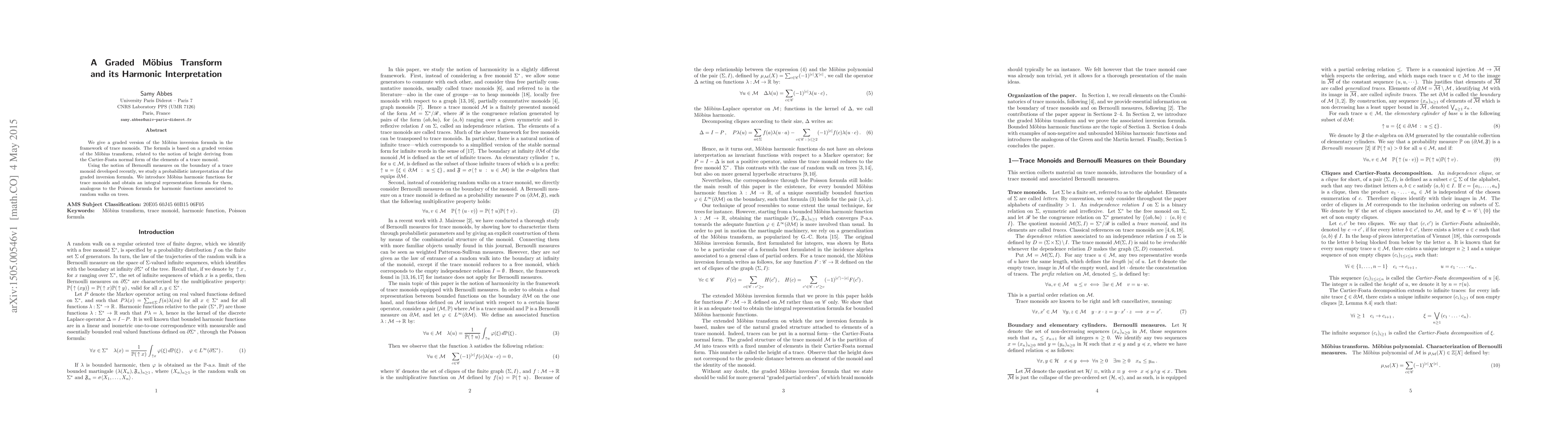 This paper presents a graded version of the Möbius inversion formula within the context of trace monoids, utilizing a graded Möbius transform linked to the concept of height from the Cartier-Foata normal form. It also explores a probabilistic interpretation of this formula through Bernoulli measures and introduces Möbius harmonic functions, providing an integral representation analogous to the Poisson formula for random walks on trees.