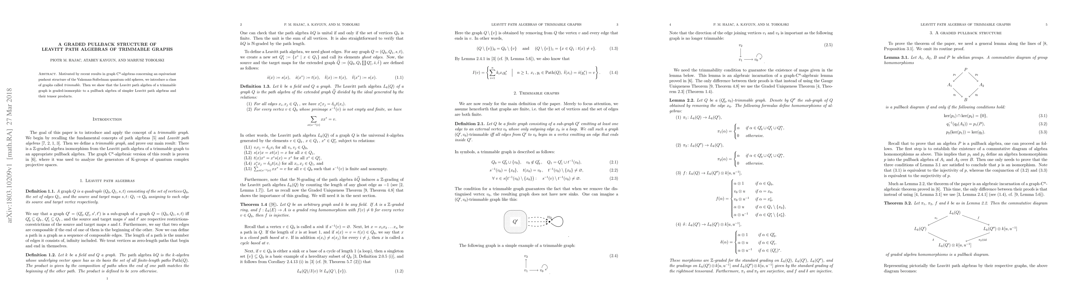 This paper introduces trimmable graphs and demonstrates that their Leavitt path algebras exhibit a graded pullback structure, analogous to recent findings in graph C*-algebras involving quantum odd spheres. This structure is shown to be a graded-isomorphism to a pullback algebra of simpler Leavitt path algebras and tensor products.