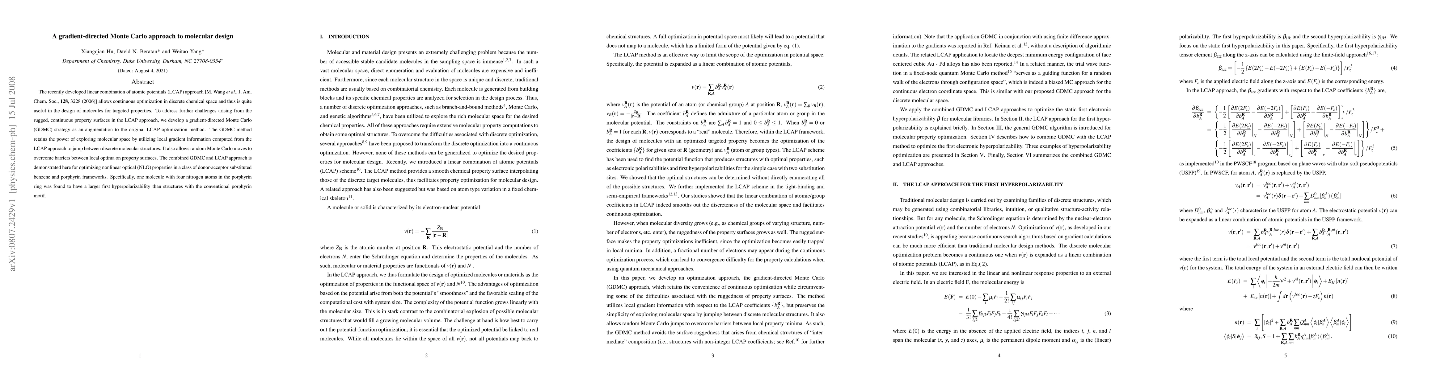 Researchers developed a new approach to molecular design that uses gradient information to guide a Monte Carlo search for optimal properties like non-linear optical activity. The method led to the discovery of a novel molecule with improved hyperpolarizability compared to traditional designs.