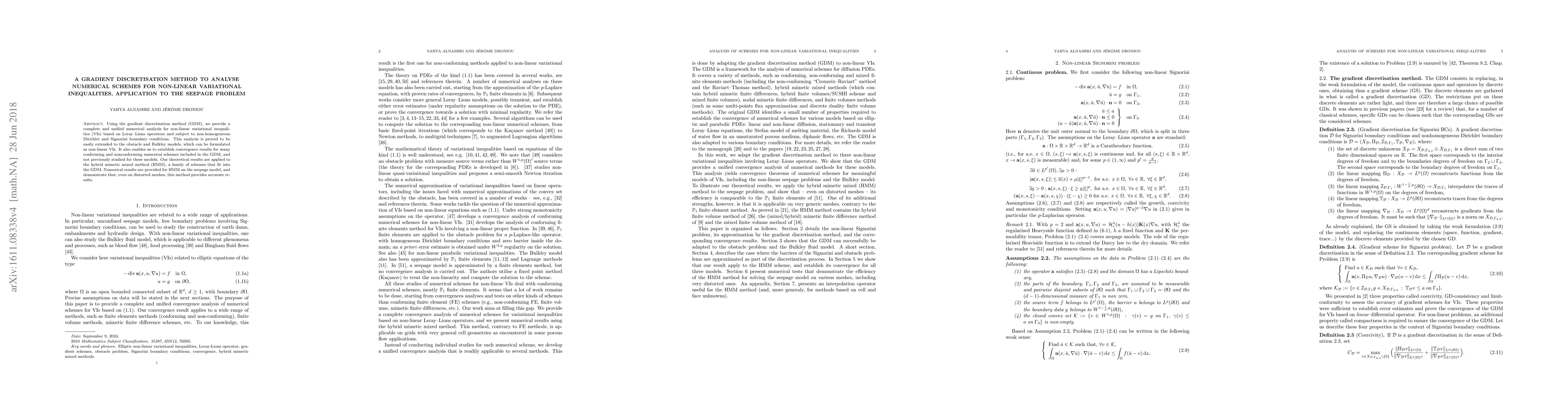 A new method is introduced to analyze numerical schemes for non-linear variational inequalities, which can model complex problems like seepage, and shows promising results with a specific scheme on distorted meshes.