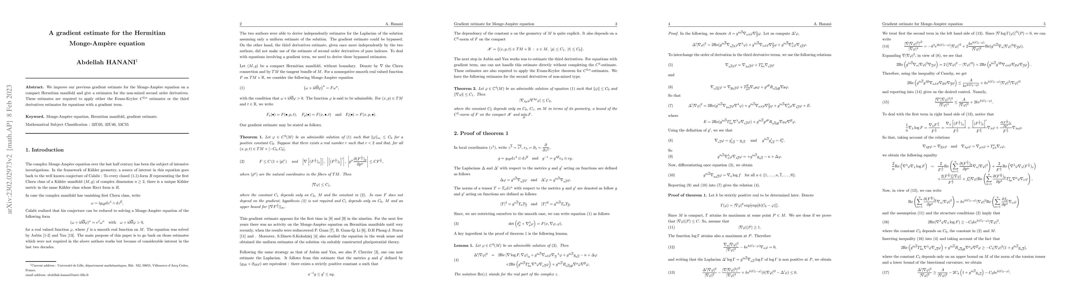 Summary: This paper refines gradient estimates for the Hermitian Monge-Ampère equation on compact Hermitian manifolds, providing new bounds for non-mixed second-order derivatives, which are essential for applying Evans-Krylov estimates or third-order derivative estimates in gradient-related equations.