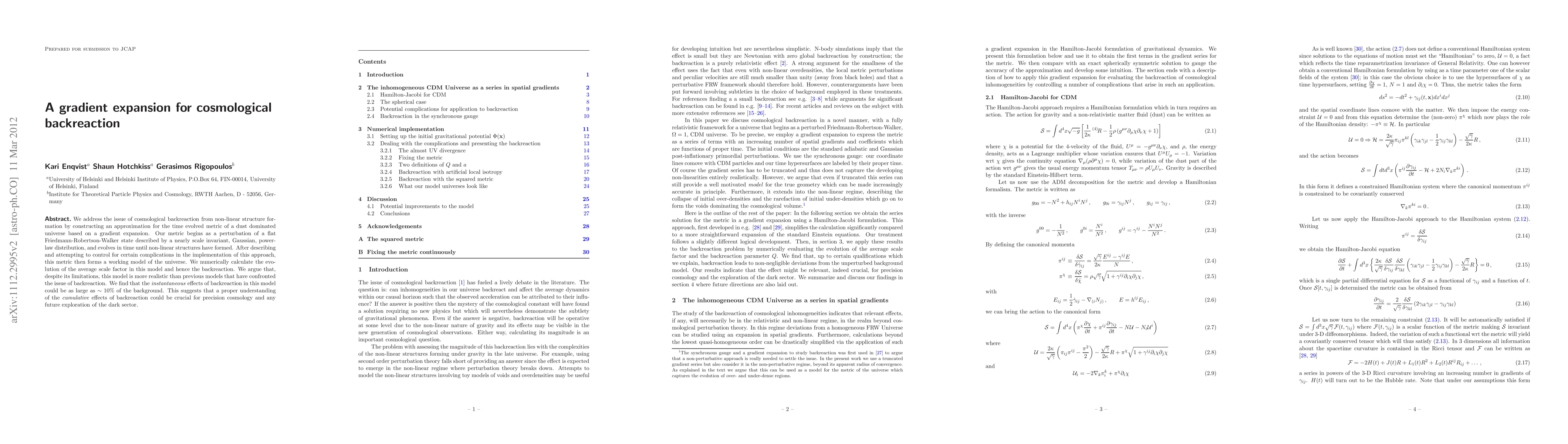 This paper develops a gradient expansion model to approximate the time-evolved metric in a dust-dominated universe, focusing on cosmological backreaction from non-linear structure formation. The model shows that backreaction effects could be as significant as 10% of the background, highlighting its potential importance for precision cosmology.