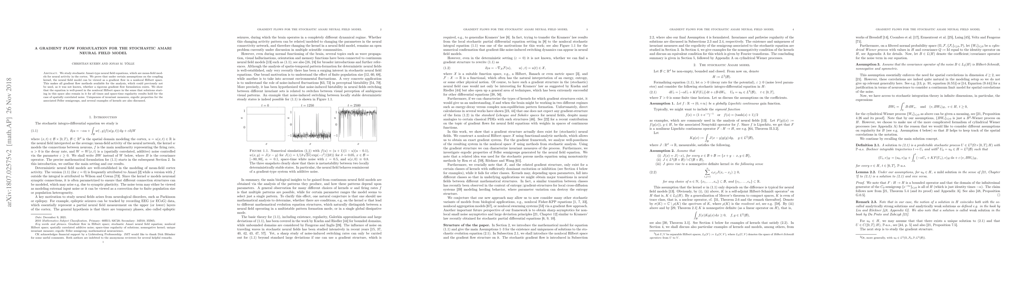 This research paper proves that stochastic Amari neural field equations can be viewed as a gradient flow in a nonlocal Hilbert space, enabling the use of gradient flow methods for analysis and providing well-posedness, uniqueness, and ergodic properties results.