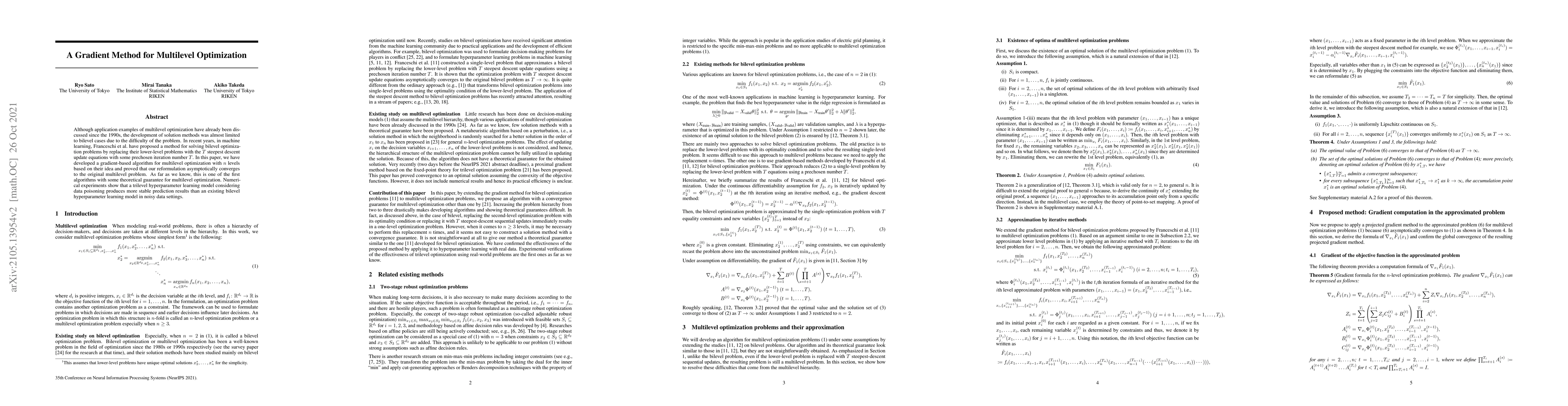 This paper introduces a gradient-based algorithm for multilevel optimization, extending previous methods for bilevel problems. It demonstrates theoretical convergence and shows improved stability in trilevel hyperparameter learning models compared to bilevel models, especially in noisy data scenarios.