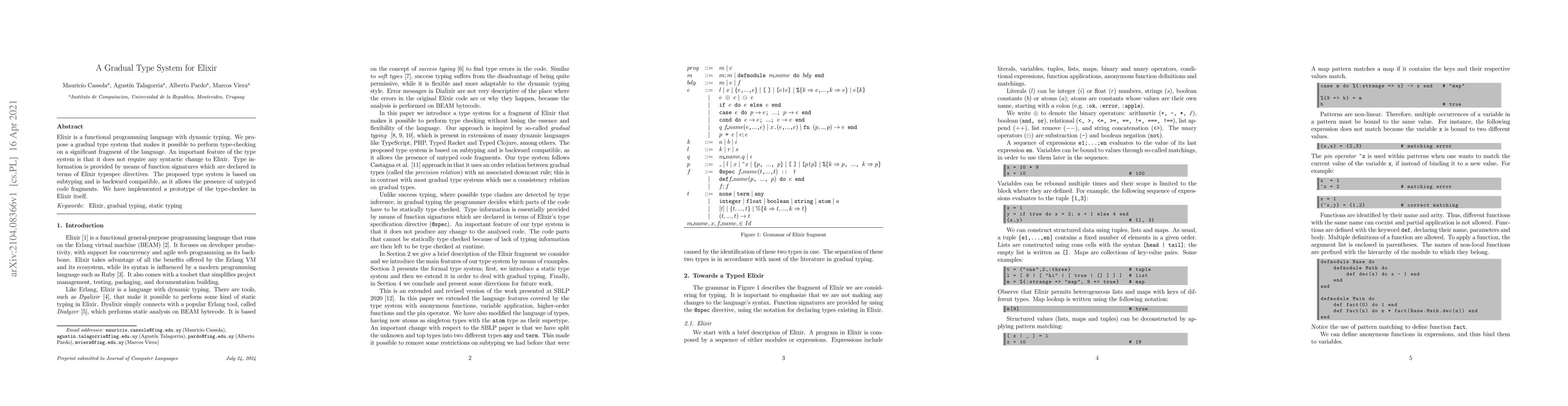 Researchers propose a gradual type system for Elixir that allows dynamic typing with optional type checking through function signatures, without requiring syntactic changes to the language.