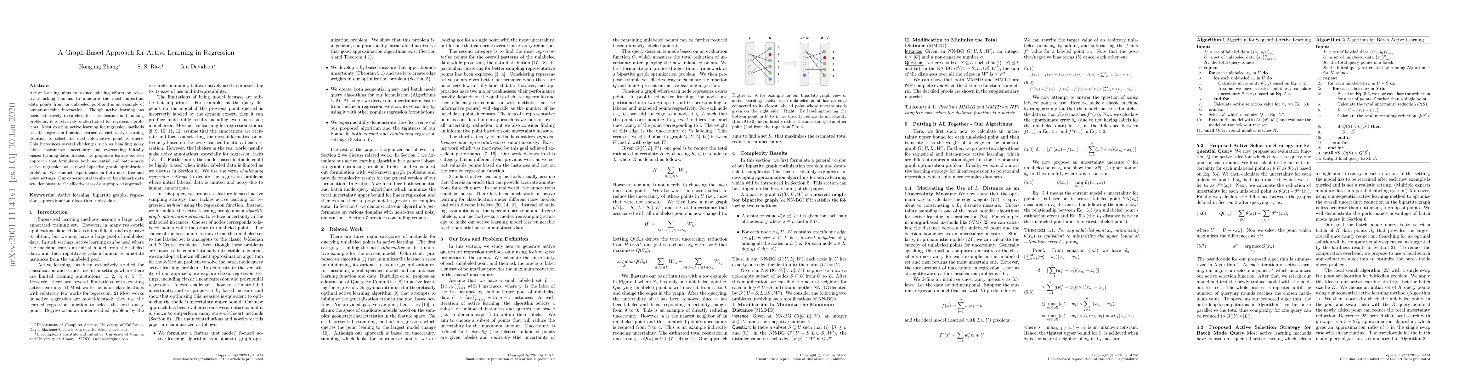 This paper proposes a graph-based method for active learning in regression, focusing on selecting the most informative features rather than data points. The approach formulates active regression as a bipartite graph optimization problem, demonstrating effectiveness in both noise-free and noisy settings through experiments on benchmark datasets.