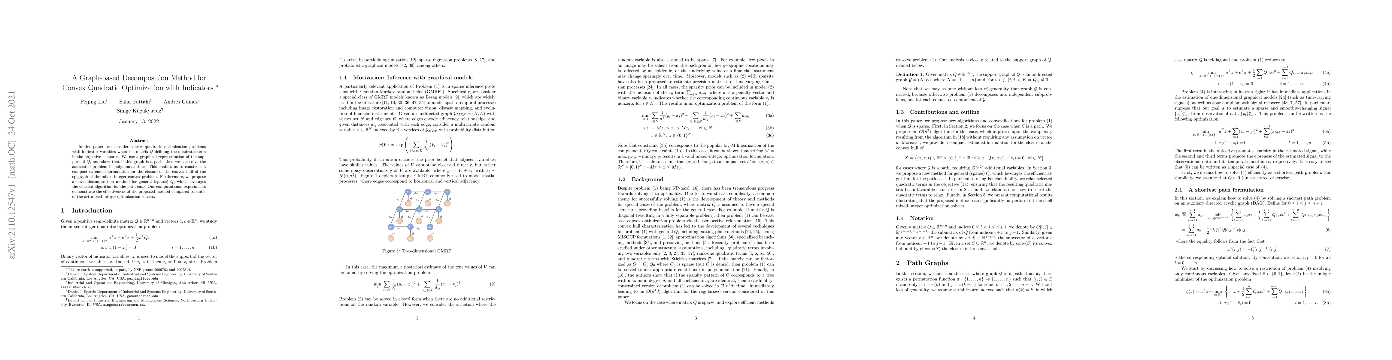 This paper presents a graph-based decomposition method for solving convex quadratic optimization problems with indicator variables, especially when the quadratic term matrix is sparse. It shows polynomial-time solvability for problems where the graph representation is a path, leading to a compact extended formulation. The proposed method also extends to general sparse cases and outperforms existing mixed-integer optimization solvers in experiments.