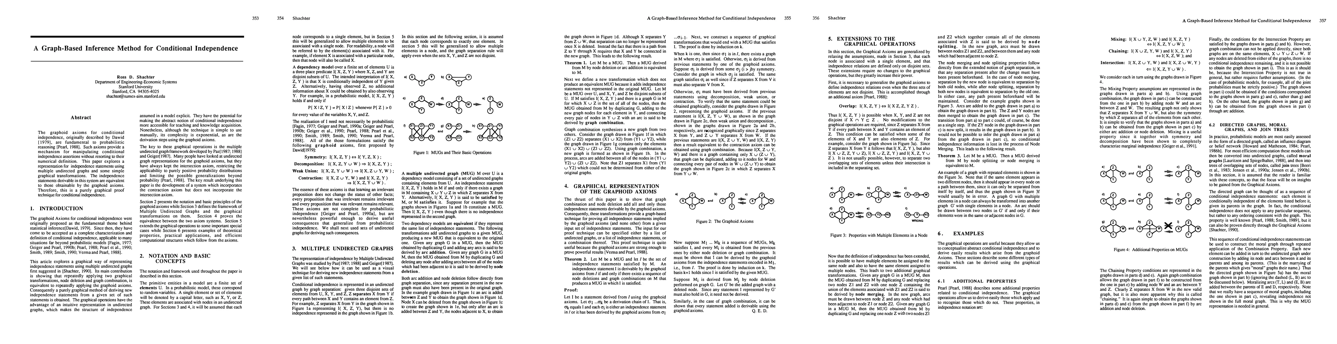 The graphoid axioms for conditional independence, originally described by Dawid [1979], are fundamental to probabilistic reasoning [Pearl, 19881. Such axioms provide a mechanism for manipulating conditional independence assertions without resorting to their numerical definition. This paper explores a representation for independence statements using multiple undirected graphs and some simple graphical transformations. The independence statements derivable in this system are equivalent to those obtainable by the graphoid axioms. Therefore, this is a purely graphical proof technique for conditional independence.