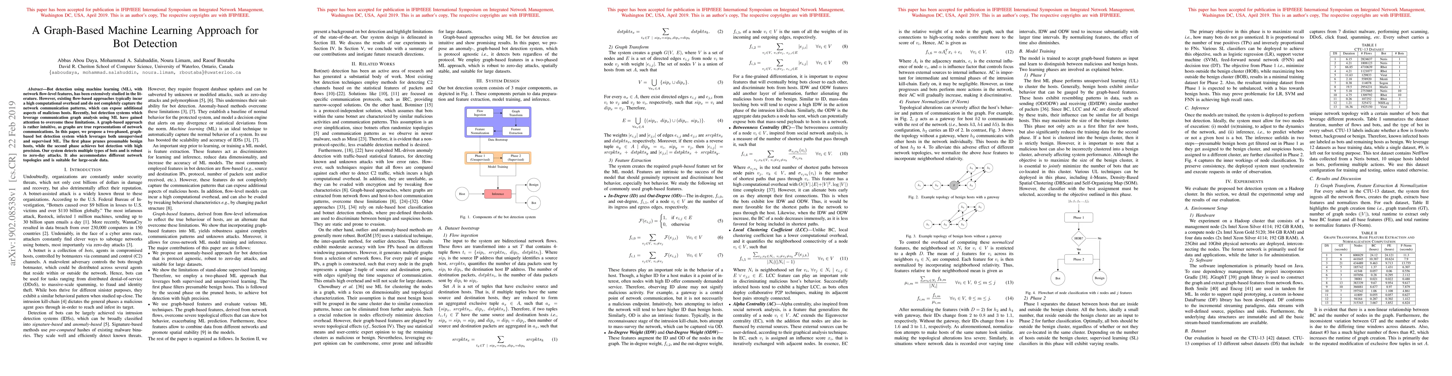 This paper proposes a two-phased, graph-based machine learning system for bot detection that leverages both unsupervised and supervised learning. The first phase identifies benign hosts, while the second phase detects bots with high precision, addressing limitations of existing flow-based methods.