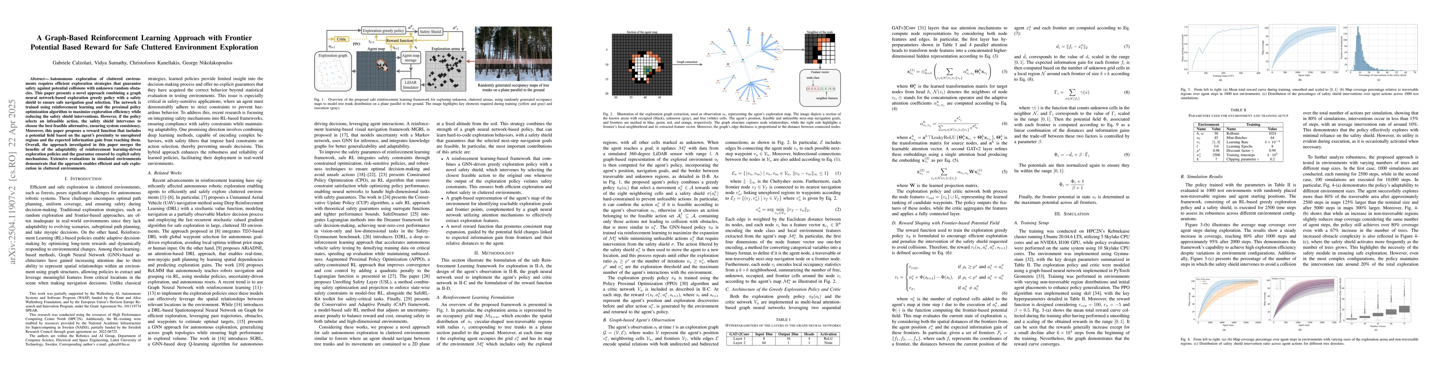 A new graph-based reinforcement learning approach combines exploration with safety mechanisms to efficiently navigate cluttered environments without collisions. The method achieves efficient exploration while ensuring system consistency through a novel reward function that incorporates proximity to unexplored regions and expected information gain.
