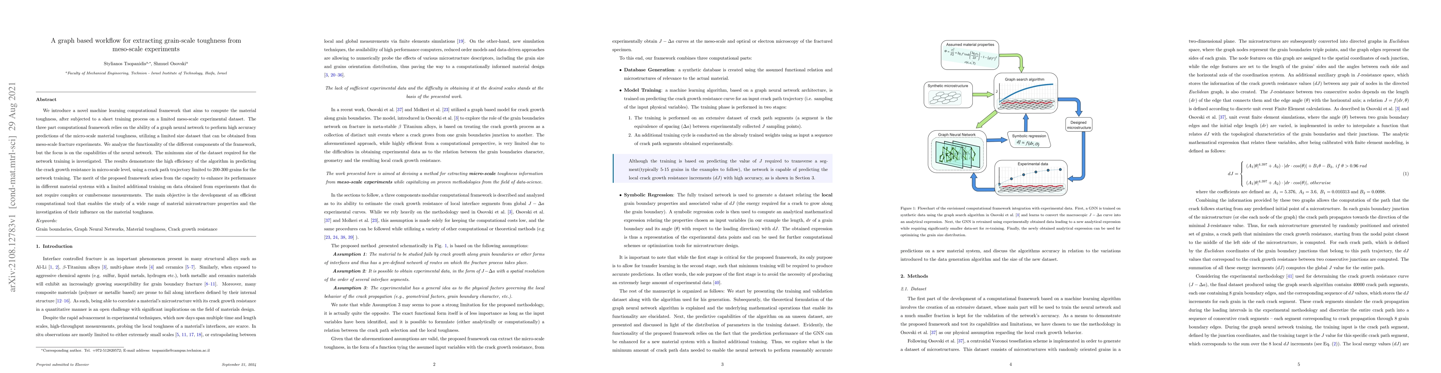 We introduce a novel machine learning computational framework that aims to compute the material toughness, after subjected to a short training process on a limited meso-scale experimental dataset. The three part computational framework relies on the ability of a graph neural network to perform high accuracy predictions of the micro-scale material toughness, utilizing a limited size dataset that can be obtained from meso-scale fracture experiments. We analyze the functionality of the different components of the framework, but the focus is on the capabilities of the neural network. The minimum size of the dataset required for the network training is investigated. The results demonstrate the high efficiency of the algorithm in predicting the crack growth resistance in micro-scale level, using a crack path trajectory limited to 200-300 grains for the network training. The merit of the proposed framework arises from the capacity to enhance its performance in different material systems with a limited additional training on data obtained from experiments that do not require complex or cumbersome measurements. The main objective is the development of an efficient computational tool that enables the study of a wide range of material microstructure properties and the investigation of their influence on the material toughness.