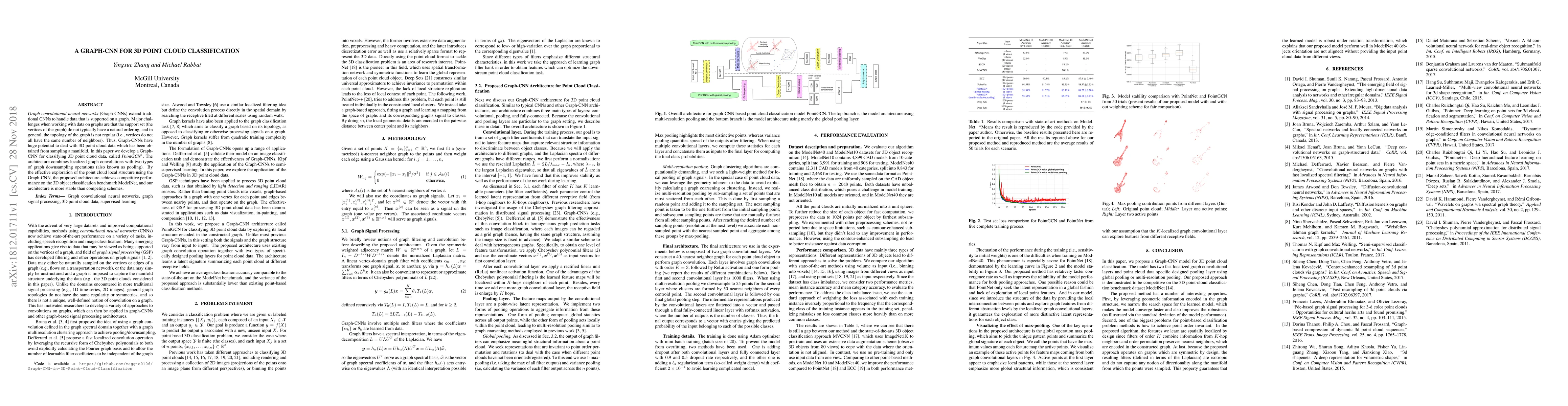 This paper proposes PointGCN, a Graph-CNN architecture for classifying 3D point cloud data by leveraging localized graph convolutions and graph downsampling. The method achieves competitive performance on the ModelNet benchmark while demonstrating greater stability compared to other approaches.