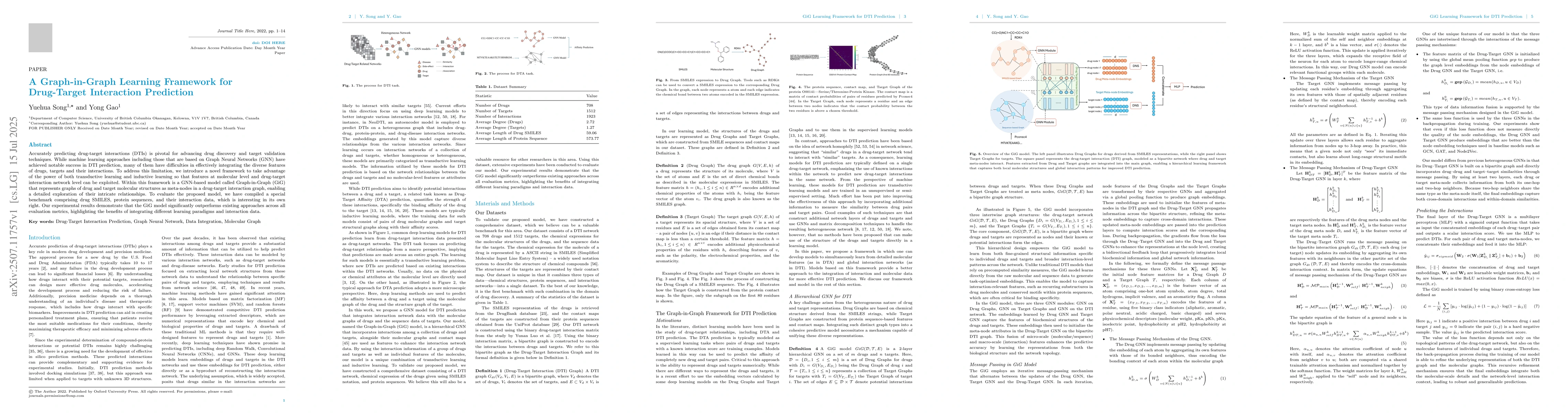 Accurately predicting drug-target interactions (DTIs) is pivotal for advancing drug discovery and target validation techniques. While machine learning approaches including those that are based on Graph Neural Networks (GNN) have achieved notable success in DTI prediction, many of them have difficulties in effectively integrating the diverse features of drugs, targets and their interactions. To address this limitation, we introduce a novel framework to take advantage of the power of both transductive learning and inductive learning so that features at molecular level and drug-target interaction network level can be exploited. Within this framework is a GNN-based model called Graph-in-Graph (GiG) that represents graphs of drug and target molecular structures as meta-nodes in a drug-target interaction graph, enabling a detailed exploration of their intricate relationships. To evaluate the proposed model, we have compiled a special benchmark comprising drug SMILES, protein sequences, and their interaction data, which is interesting in its own right. Our experimental results demonstrate that the GiG model significantly outperforms existing approaches across all evaluation metrics, highlighting the benefits of integrating different learning paradigms and interaction data.
