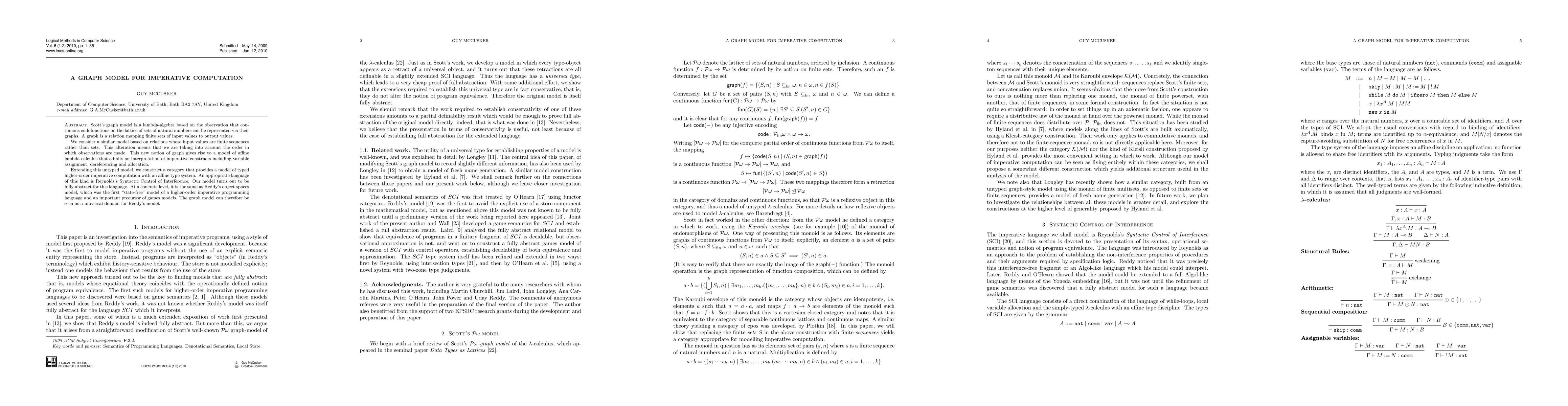 Scott's graph model is a lambda-algebra based on the observation that continuous endofunctions on the lattice of sets of natural numbers can be represented via their graphs. A graph is a relation mapping finite sets of input values to output values. We consider a similar model based on relations whose input values are finite sequences rather than sets. This alteration means that we are taking into account the order in which observations are made. This new notion of graph gives rise to a model of affine lambda-calculus that admits an interpretation of imperative constructs including variable assignment, dereferencing and allocation. Extending this untyped model, we construct a category that provides a model of typed higher-order imperative computation with an affine type system. An appropriate language of this kind is Reynolds's Syntactic Control of Interference. Our model turns out to be fully abstract for this language. At a concrete level, it is the same as Reddy's object spaces model, which was the first "state-free" model of a higher-order imperative programming language and an important precursor of games models. The graph model can therefore be seen as a universal domain for Reddy's model.
