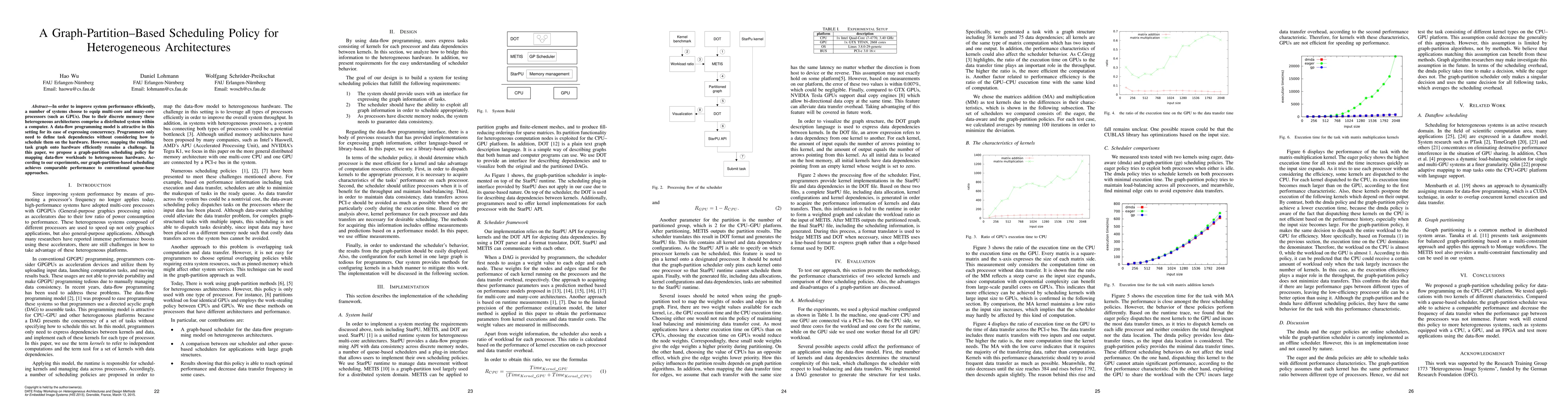 This paper proposes a graph-partition-based scheduling policy to efficiently map data-flow workloads onto heterogeneous architectures like multi-core and many-core processors. Experimental results show that this approach achieves comparable performance to conventional queue-based methods.