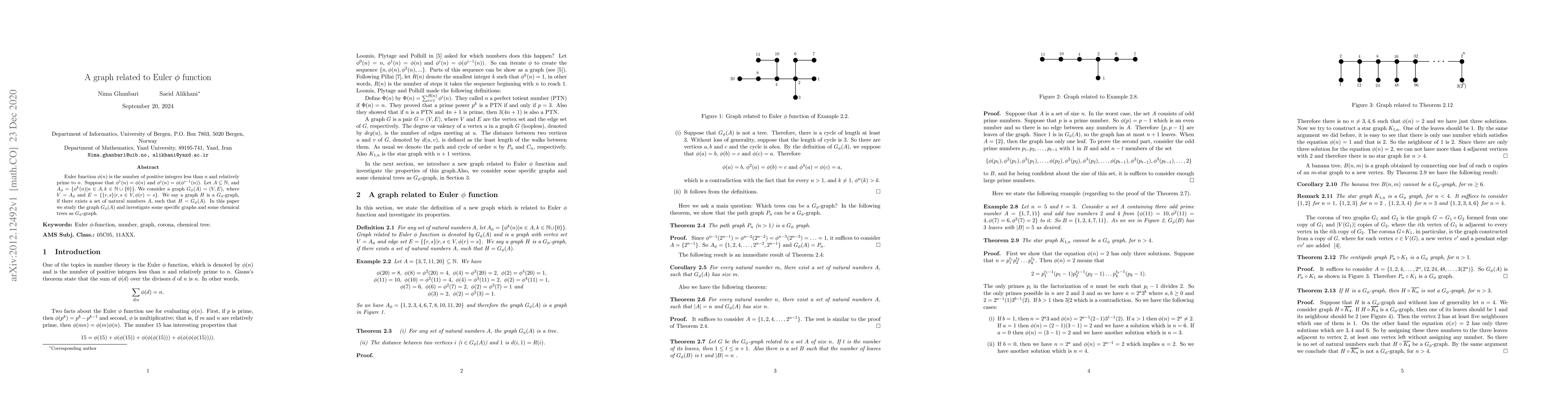 This research introduces a graph $G_{phi}(A)$ based on Euler's totient function $phi(n)$, connecting numbers via $phi$. The study explores specific graphs and chemical trees as $G_phi$-graphs, providing insights into their structures and properties.