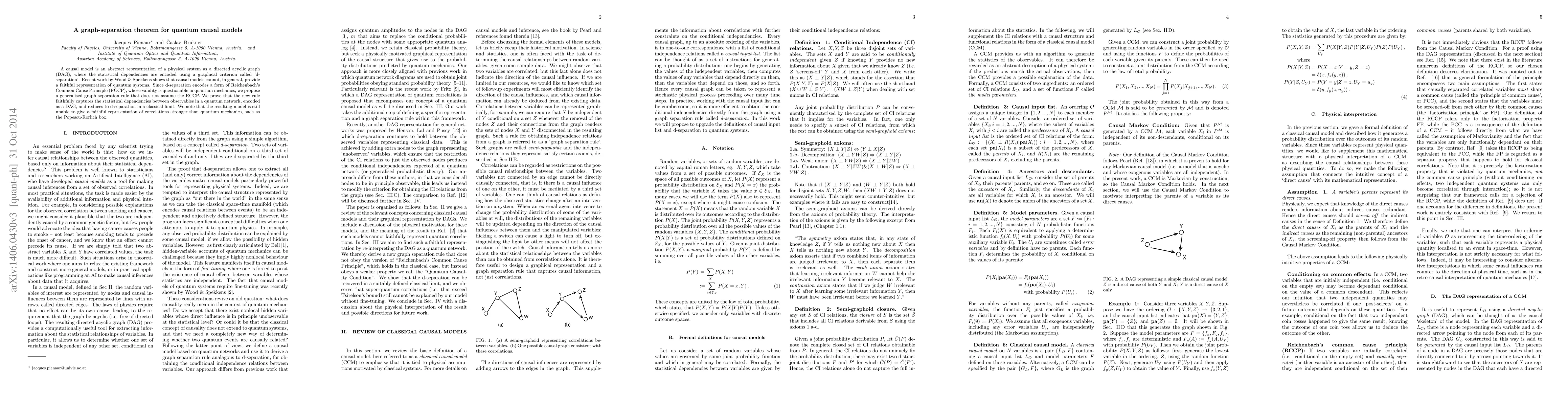 A causal model is an abstract representation of a physical system as a directed acyclic graph (DAG), where the statistical dependencies are encoded using a graphical criterion called `d-separation'. Recent work by Wood & Spekkens shows that causal models cannot, in general, provide a faithful representation of quantum systems. Since d-separation encodes a form of Reichenbach's Common Cause Principle (RCCP), whose validity is questionable in quantum mechanics, we propose a generalised graph separation rule that does not assume the RCCP. We prove that the new rule faithfully captures the statistical dependencies between observables in a quantum network, encoded as a DAG, and is consistent with d-separation in a classical limit. We note that the resulting model is still unable to give a faithful representation of correlations stronger than quantum mechanics, such as the Popescu-Rorlich box.