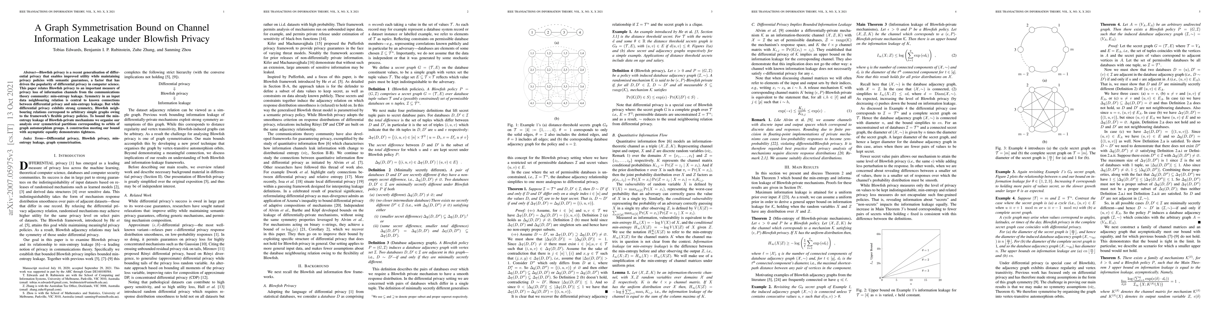 This paper establishes a graph symmetrisation bound for min-entropy leakage in channels under Blowfish privacy, showing how symmetrical partitions derived from graph automorphism groups can effectively constrain privacy loss. The construction achieving this bound illustrates its tightness.