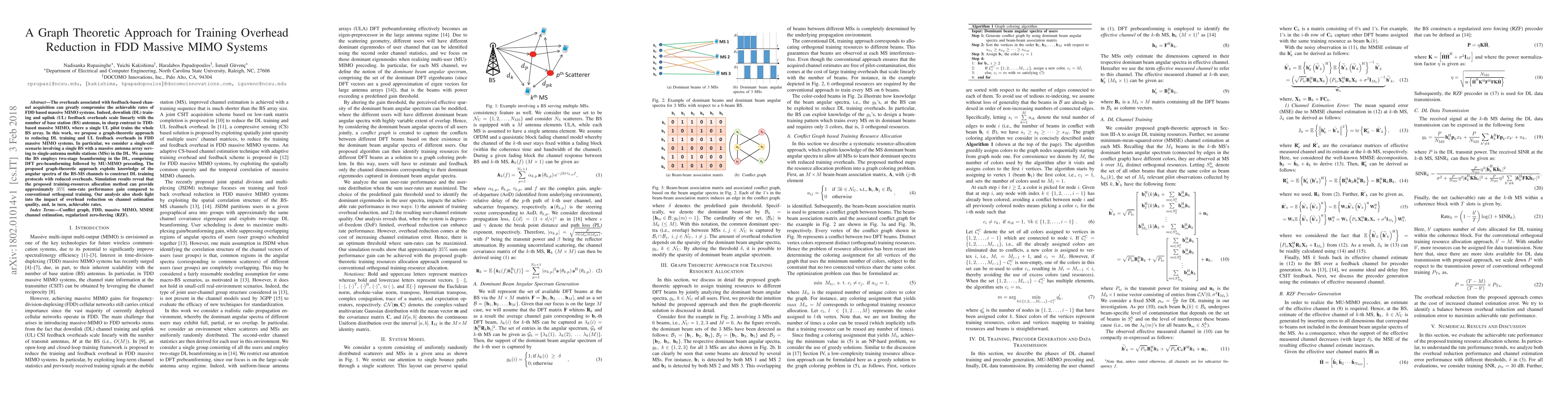 This paper proposes a graph-theoretic approach to reduce training and feedback overheads in FDD massive MIMO systems, achieving a 35% sum-rate gain over conventional orthogonal training by leveraging angular channel spectra for optimized training protocols. The method also examines the trade-off between overhead reduction and channel estimation accuracy.
