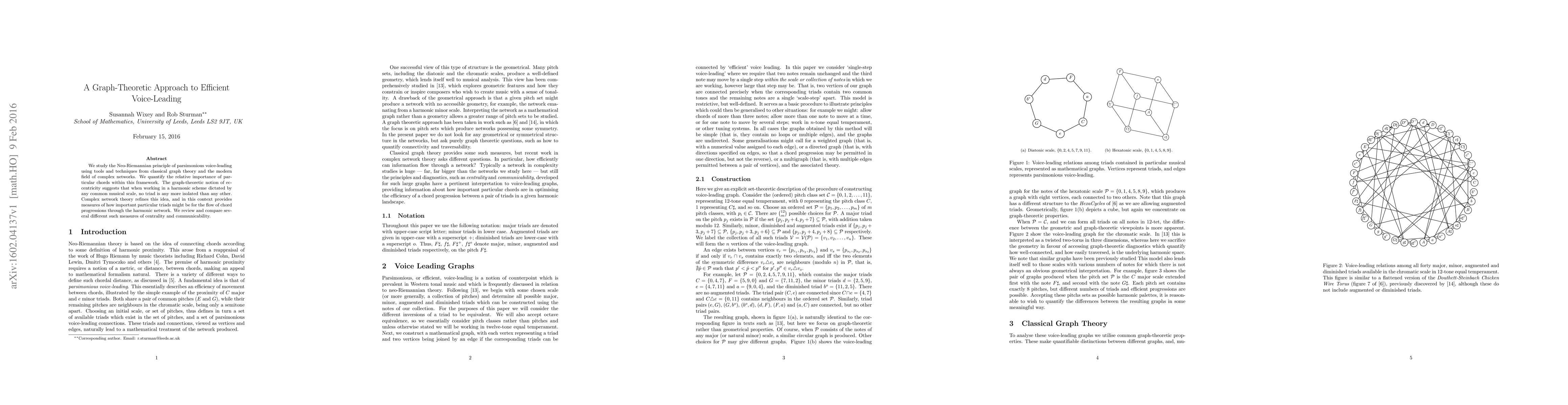 Researchers applied graph theory to analyze voice-leading in music, finding that no triad is more isolated than others, and developed measures of centrality and communicability to quantify the importance of chords.