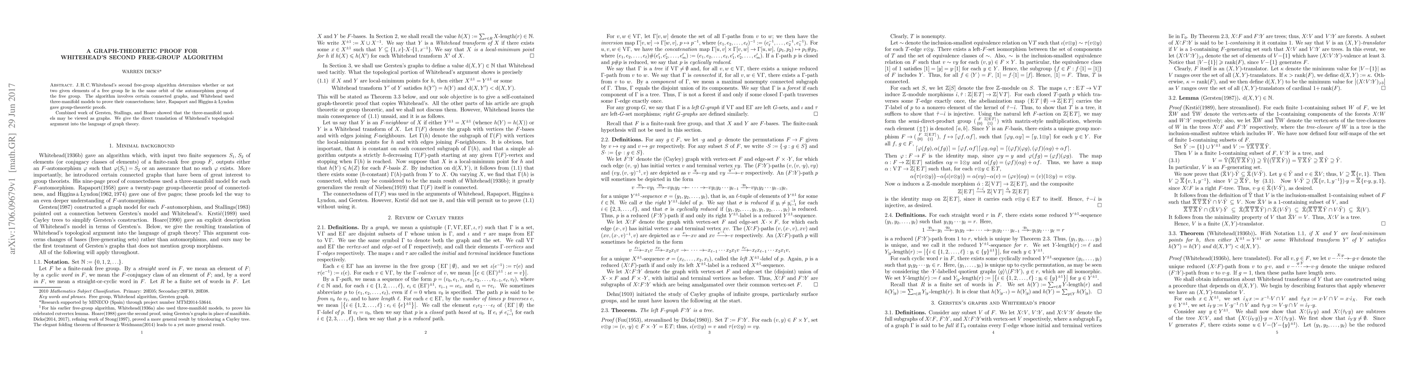 This paper presents a graph-theoretic proof for J.H.C. Whitehead's second free-group algorithm, translating his original topological argument into graph theory to determine if two elements of a free group are in the same orbit under the group's automorphisms. This approach builds on the work of Gersten, Stallings, and Hoare, who reinterpreted three-manifold models as graphs.