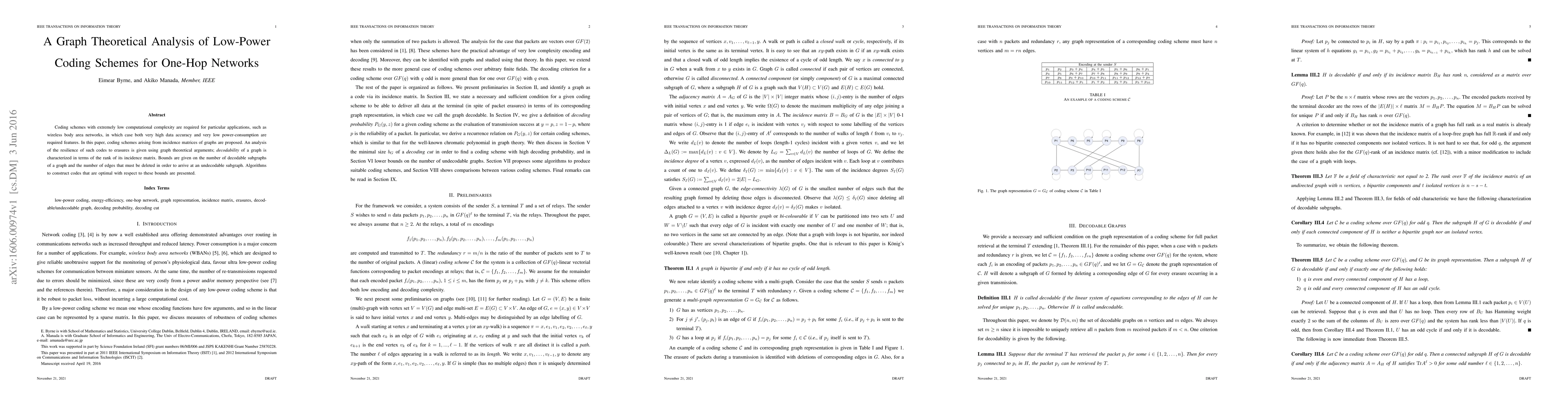 Researchers propose new coding schemes for low-power networks using graph theory, providing bounds on decodability and offering algorithms to construct optimal codes, aiming to balance data accuracy and power consumption.