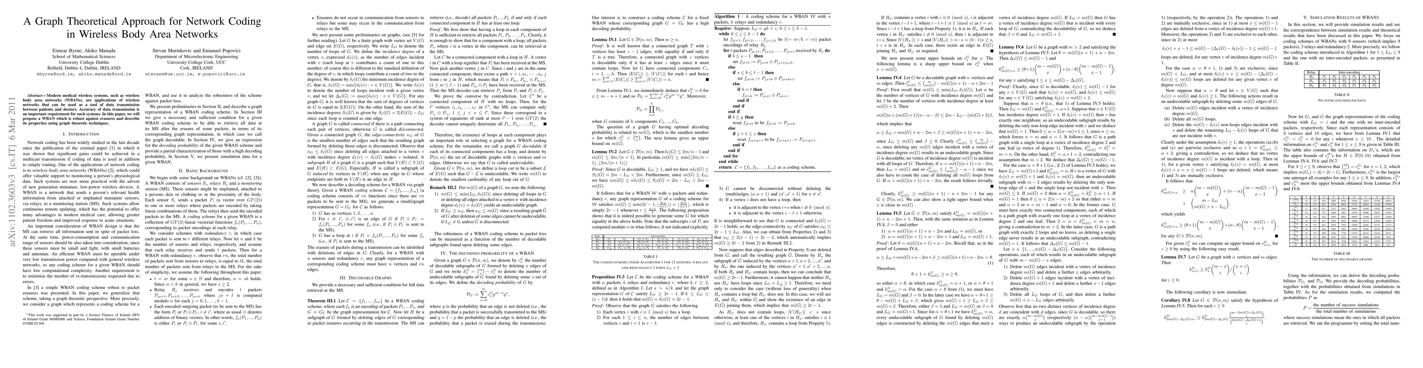 This paper proposes a robust wireless body area network (WBAN) using graph theoretical techniques to enhance data transmission reliability against erasures, emphasizing the importance of accurate data in medical wireless systems. The approach leverages graph theory to analyze and improve network coding in WBANs.