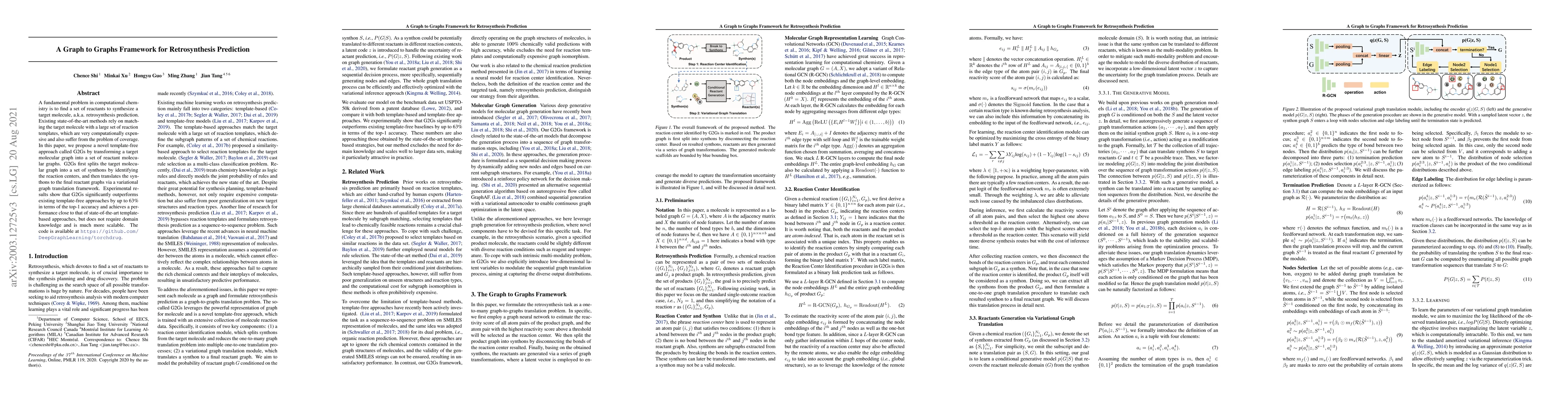 A new method called G2Gs predicts retrosynthesis by transforming a target molecule into sets of reactant molecules without relying on expensive reaction templates. It outperforms existing methods with up to 63% accuracy.