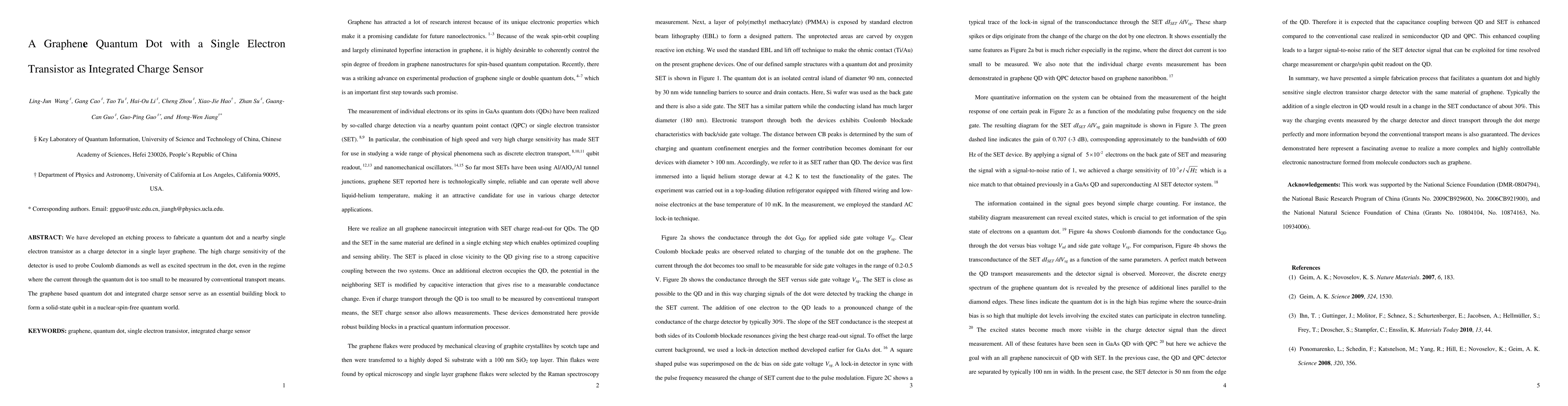 This paper details the fabrication of a graphene quantum dot and single electron transistor integrated as a highly sensitive charge sensor. The setup allows for the detection of Coulomb diamonds and the quantum dot's excited spectrum, even at low currents, demonstrating potential for forming solid-state qubits.