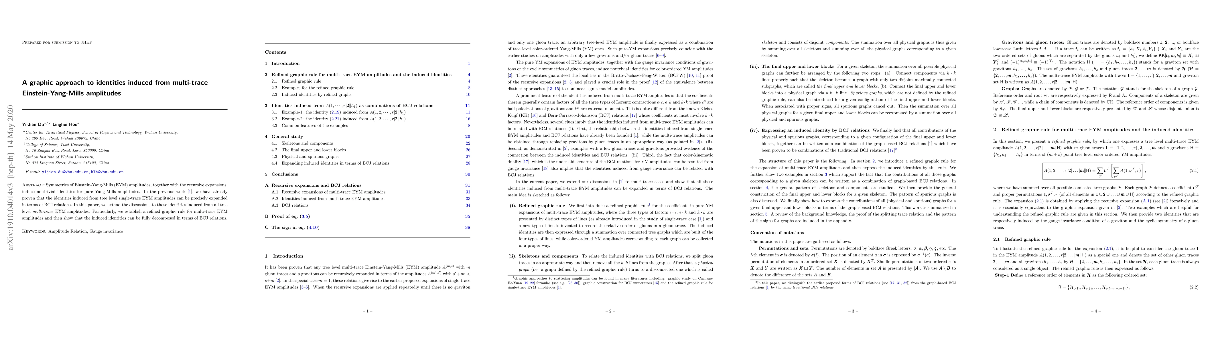 This paper extends previous work on identities from Einstein-Yang-Mills amplitudes to multi-trace cases, establishing a graphic rule that allows the decomposition of these identities into BCJ relations, mirroring the single-trace case.