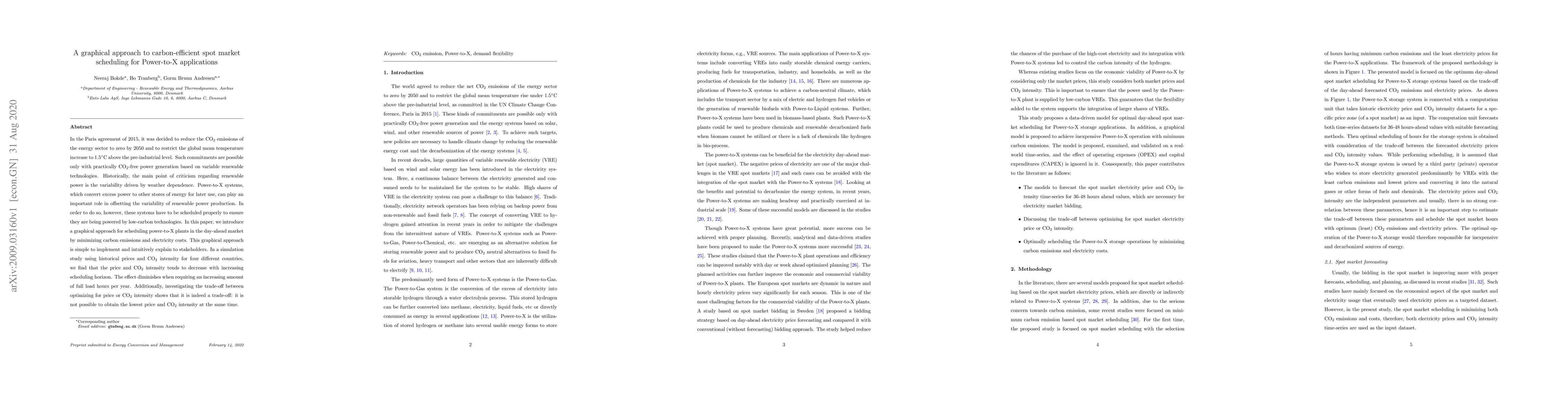 In the Paris agreement of 2015, it was decided to reduce the CO2 emissions of the energy sector to zero by 2050 and to restrict the global mean temperature increase to 1.5 degree Celcius above the pre-industrial level. Such commitments are possible only with practically CO2-free power generation based on variable renewable technologies. Historically, the main point of criticism regarding renewable power is the variability driven by weather dependence. Power-to-X systems, which convert excess power to other stores of energy for later use, can play an important role in offsetting the variability of renewable power production. In order to do so, however, these systems have to be scheduled properly to ensure they are being powered by low-carbon technologies. In this paper, we introduce a graphical approach for scheduling power-to-X plants in the day-ahead market by minimizing carbon emissions and electricity costs. This graphical approach is simple to implement and intuitively explain to stakeholders. In a simulation study using historical prices and CO2 intensity for four different countries, we find that the price and CO2 intensity tends to decrease with increasing scheduling horizon. The effect diminishes when requiring an increasing amount of full load hours per year. Additionally, investigating the trade-off between optimizing for price or CO2 intensity shows that it is indeed a trade-off: it is not possible to obtain the lowest price and CO2 intensity at the same time.