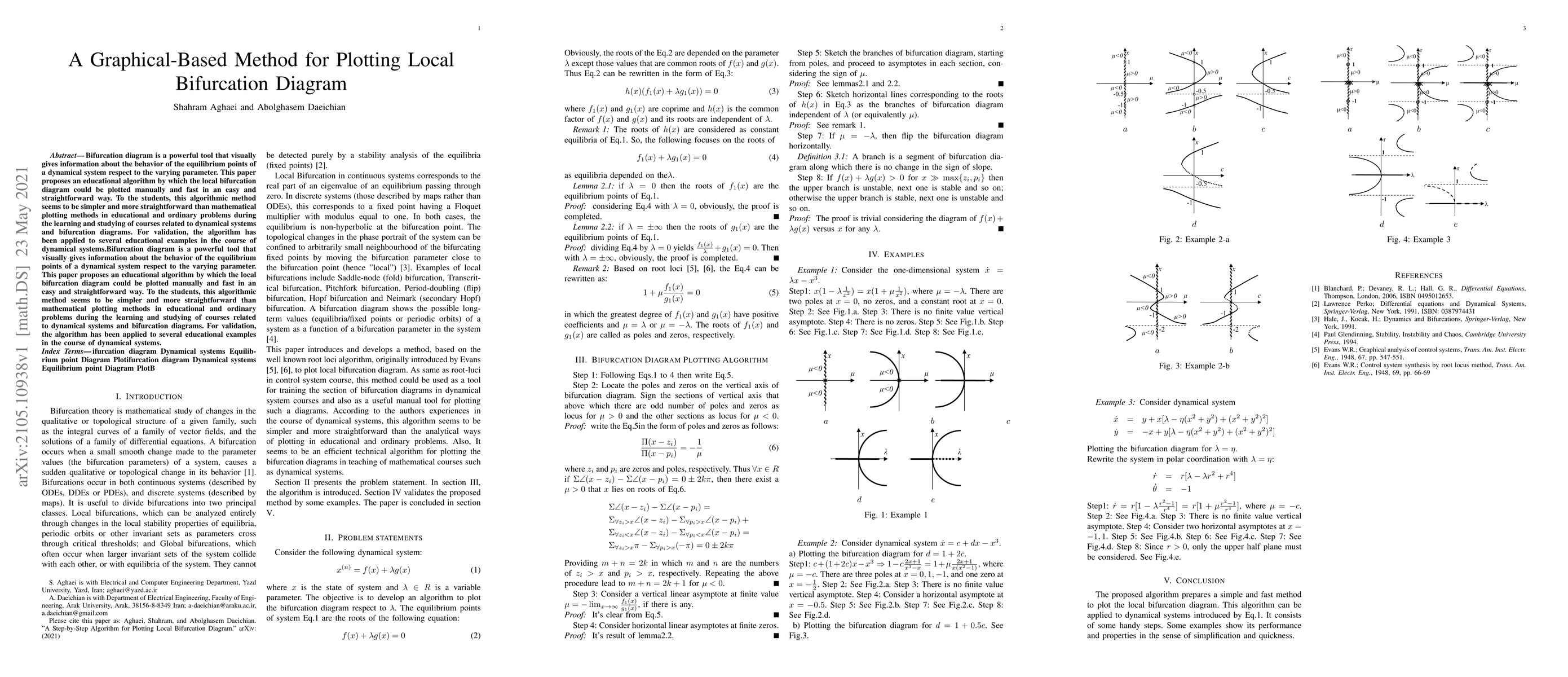 Bifurcation diagram is a powerful tool that visually gives information about the behavior of the equilibrium points of a dynamical system respect to the varying parameter. This paper proposes an educational algorithm by which the local bifurcation diagram could be plotted manually and fast in an easy and straightforward way. To the students, this algorithmic method seems to be simpler and more straightforward than mathematical plotting methods in educational and ordinary problems during the learning and studying of courses related to dynamical systems and bifurcation diagrams. For validation, the algorithm has been applied to several educational examples in the course of dynamical systems.