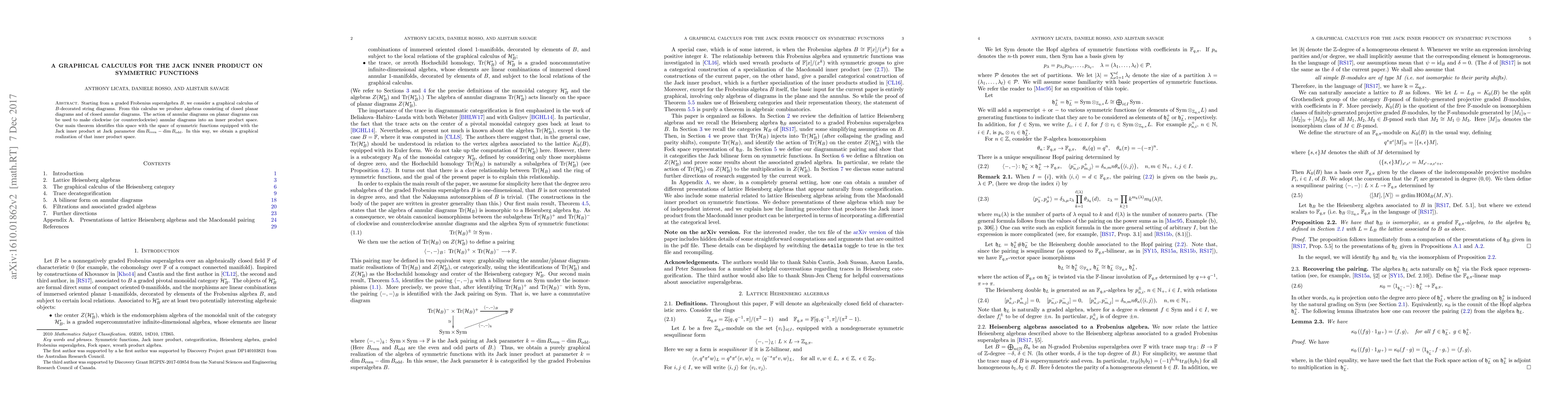 Researchers develop a graphical calculus that connects string diagrams to symmetric functions with the Jack inner product, providing a novel realization of this inner product space.