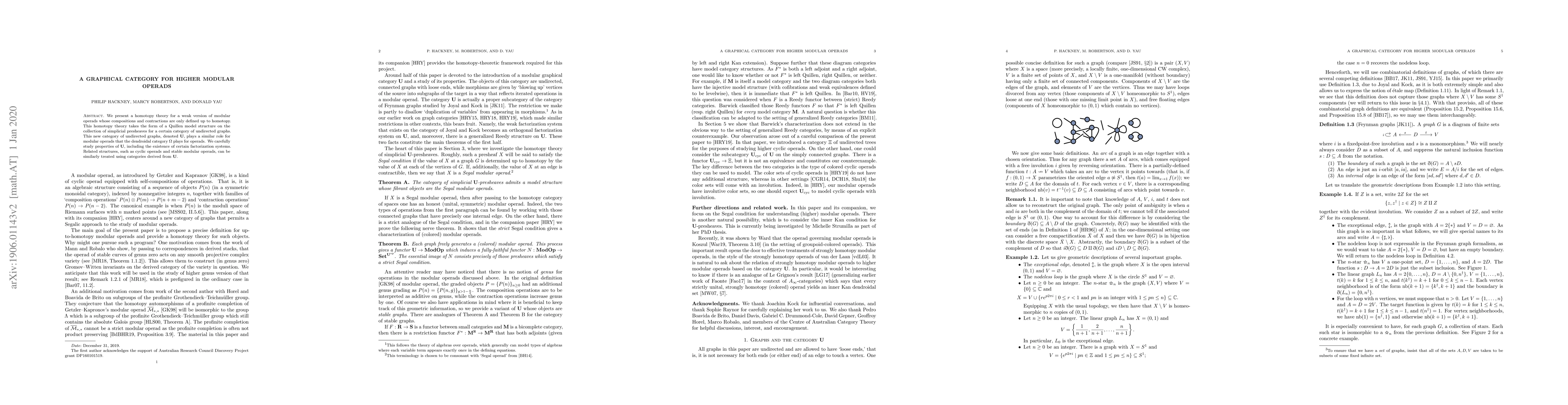 We present a homotopy theory for a weak version of modular operads whose compositions and contractions are only defined up to homotopy. This homotopy theory takes the form of a Quillen model structure on the collection of simplicial presheaves for a certain category of undirected graphs. This new category of undirected graphs, denoted $\mathbf{U}$, plays a similar role for modular operads that the dendroidal category $\Omega$ plays for operads. We carefully study properties of $\mathbf{U}$, including the existence of certain factorization systems. Related structures, such as cyclic operads and stable modular operads, can be similarly treated using categories derived from $\mathbf{U}$.