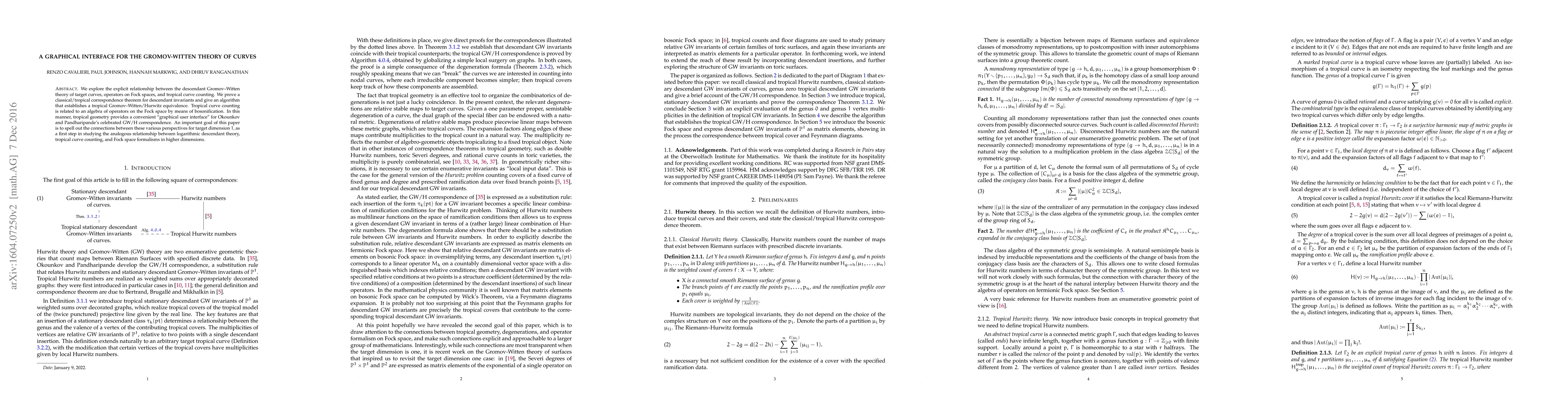 The paper establishes a classical/tropical correspondence theorem for descendant Gromov-Witten invariants, linking them to operators on Fock spaces and tropical curve counting. It introduces an algorithm for Gromov-Witten/Hurwitz equivalence and explains how tropical geometry can serve as a 'graphical user interface' for the GW/H correspondence, aiming to extend these connections to higher dimensions.