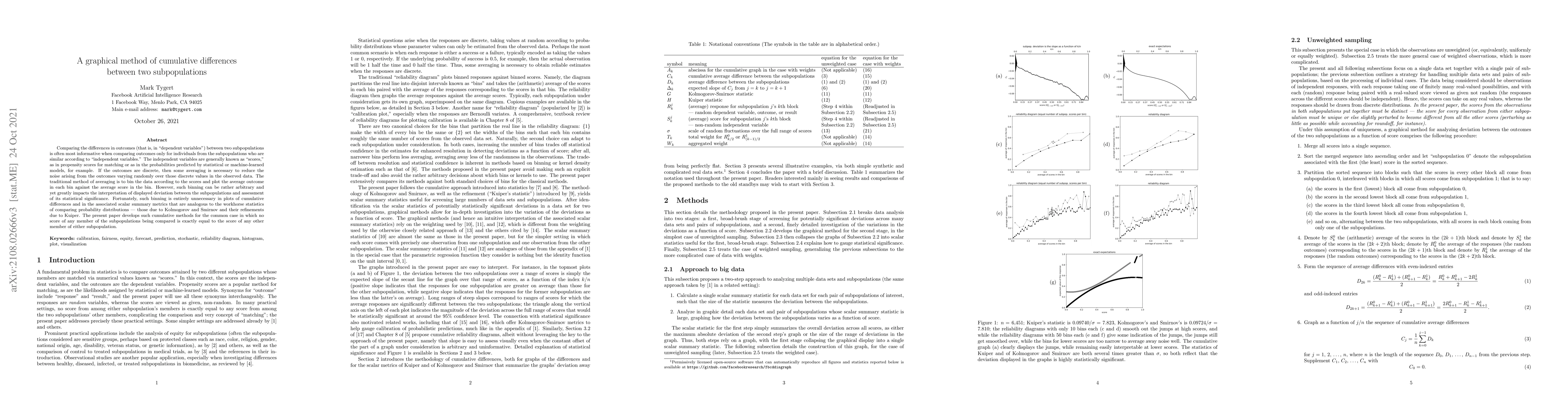 This paper introduces a graphical method for comparing cumulative differences between two subpopulations, eliminating the need for arbitrary binning of data. It proposes a more precise approach analogous to Kolmogorov-Smirnov statistics to assess the significance of outcome differences between subpopulations, reducing noise from discrete outcomes.