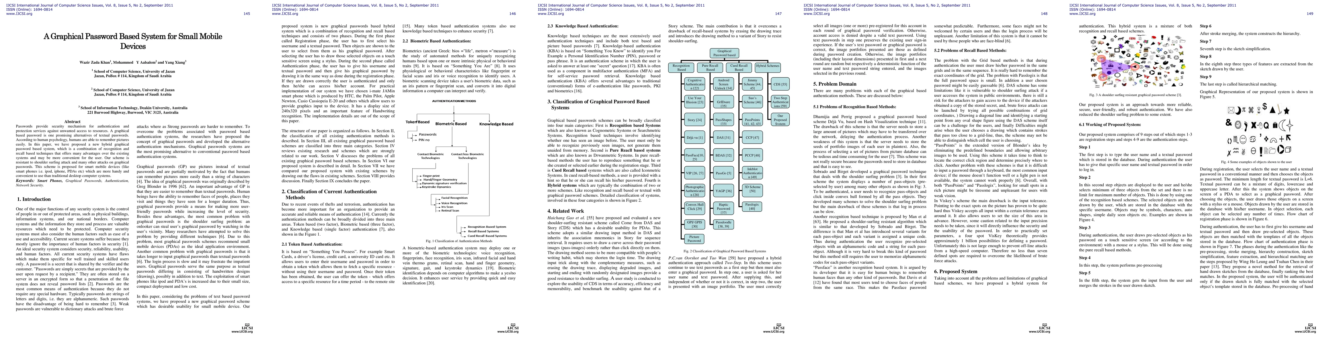This paper proposes a hybrid graphical password system combining recognition and recall for small mobile devices, aiming to enhance security and convenience over traditional textual passwords while resisting shoulder surfing and other attacks. The system is designed for easy memorization and use on smart mobile devices.