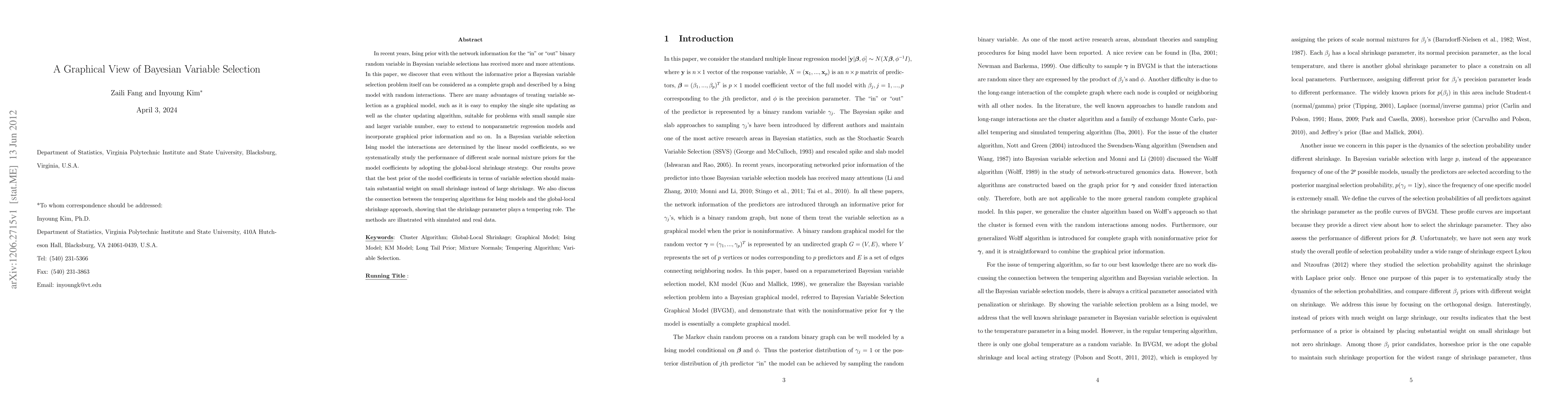 This paper proposes viewing Bayesian variable selection as a complete graph represented by an Ising model with random interactions, highlighting the advantages of this graphical approach. It finds that the optimal prior for model coefficients should favor small shrinkage, and discusses the connection between tempering algorithms and global-local shrinkage strategies, demonstrating these insights through simulations and real data.