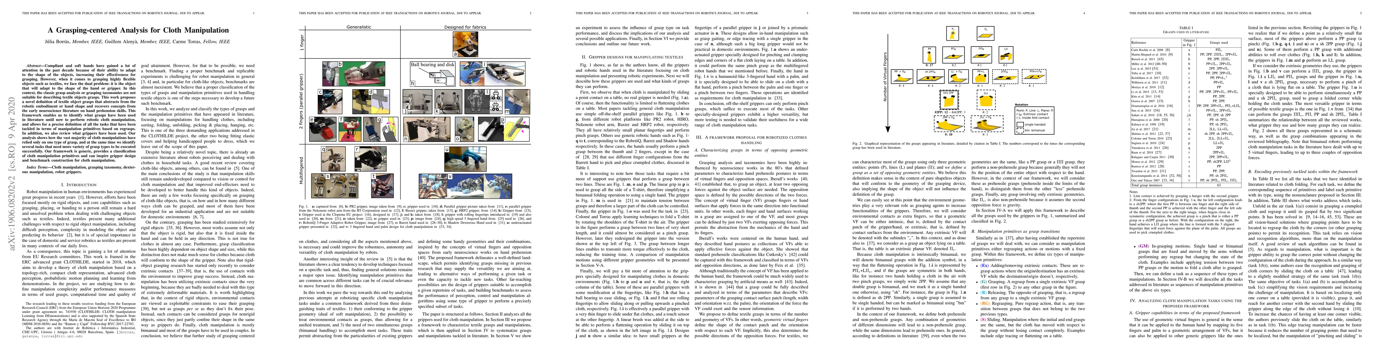 Researchers propose a new grasp analysis framework for cloth manipulation that abstracts from robotic embodiment, allowing for classification of cloth manipulation primitives and identification of tasks requiring more diverse grasp types.