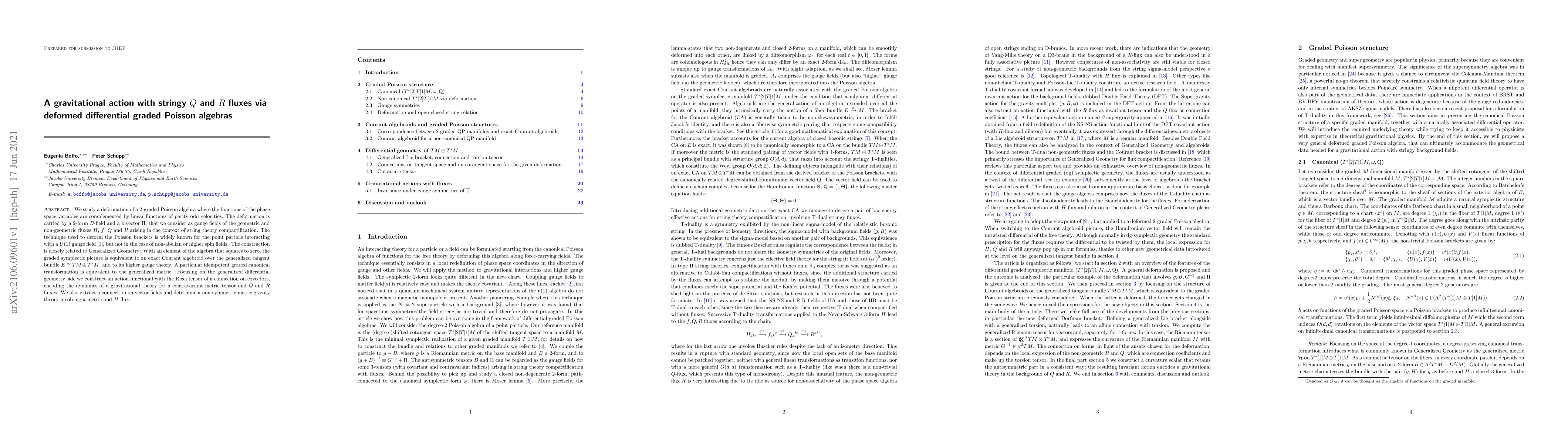 We study a deformation of a $2$-graded Poisson algebra where the functions of the phase space variables are complemented by linear functions of parity odd velocities. The deformation is carried by a $2$-form $B$-field and a bivector $\Pi$, that we consider as gauge fields of the geometric and non-geometric fluxes $H$, $f$, $Q$ and $R$ arising in the context of string theory compactification. The technique used to deform the Poisson brackets is widely known for the point particle interacting with a $U(1)$ gauge field, but not in the case of non-abelian or higher spin fields. The construction is closely related to Generalized Geometry: With an element of the algebra that squares to zero, the graded symplectic picture is equivalent to an exact Courant algebroid over the generalized tangent bundle $E \cong TM \oplus T^{*}M$, and to its higher gauge theory. A particular idempotent graded canonical transformation is equivalent to the generalized metric. Focusing on the generalized differential geometry side we construct an action functional with the Ricci tensor of a connection on covectors, encoding the dynamics of a gravitational theory for a contravariant metric tensor and $Q$ and $R$ fluxes. We also extract a connection on vector fields and determine a non-symmetric metric gravity theory involving a metric and $H$-flux.